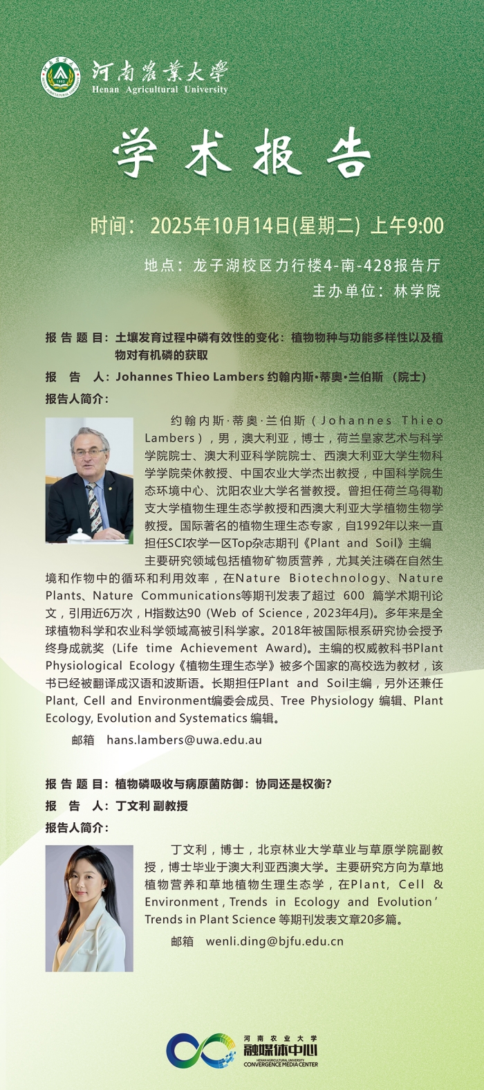 地 点:龙子湖校区综合楼120报告厅