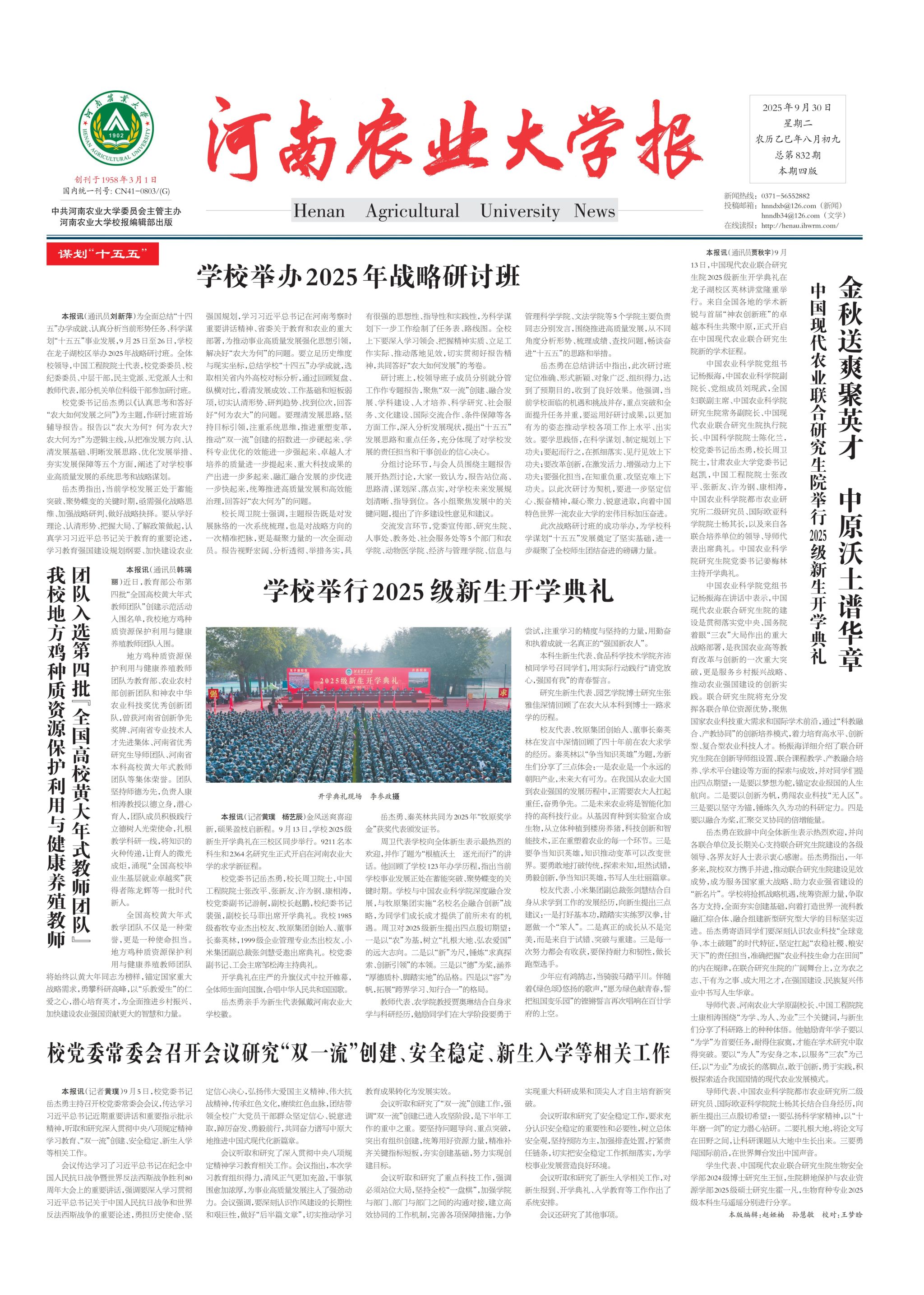 中国现代农业联合研究生院2025级新生开学典礼隆重举行