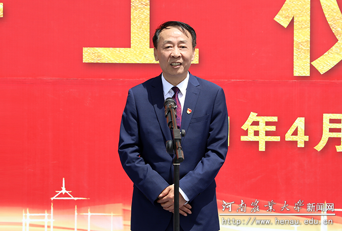 赵文峰在致辞中向我校许昌校区二期工程建设项目顺利开工表示祝贺,向河南农大长期以来对许昌事业发展的支持表示感谢。他表示,许昌市始终把优先发展教育事业作为推动各项事业发展的先手棋,全面落实教育优先发展战略,注重加大与高校的合作共建力度。他指出,全市各级部门将高度重视河南农大许昌校区二期工程建设,要在工程质量、建设进度、安全水平上打造样板工程、精品工程,并以此为契机,深化校市在建设全国城乡融合发展试验区、实施乡村振兴战略等方面的合作,共同开创互惠共赢的新局面。