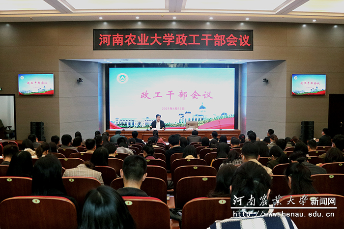 本网讯(通讯员 郭柄辛)4月12日,学校在龙子湖校区召开2021年政工干部会议。校党委副书记、工会主席李成吾出席会议。学校全体政工干部参加会议。