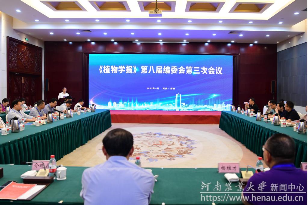 本网讯(通讯员 赵月 图片 杨艺辰)6月9至11日,由《植物学报》编辑部主办、我校承办的《植物学报》第八届编委会第三次会议在郑州召开。中国科学院院士、《植物学报》名誉主编、中国植物学会理事长种康研究员,中国科学院院士、《植物学报》学术咨询委员、中国科学院遗传与发育生物学研究所所长杨维才研究员,校长介晓磊,副校长尚富德出席会议。《植物学报》编委会成员、生命科学学院教师代表参加了会议。