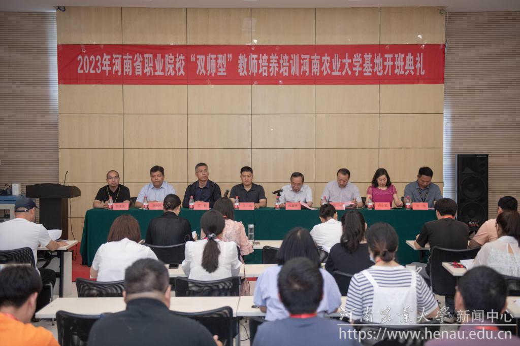 本网讯(通讯员 车银超)近日,2023年河南省职业教育“双师型”教师培养培训——河南农业大学培训基地开班典礼在郑州举行。副校长尚富德、省教育厅职成教处副处长王凯出席开班典礼。人事处,信息与管理科学学院负责人和来自全省各高职院校的72名高职教师参加开班典礼。