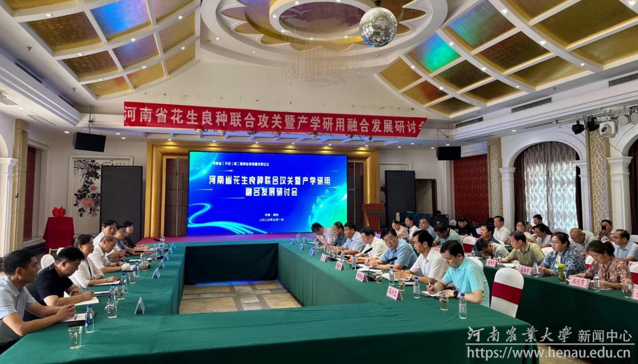 校长介晓磊,河南省农业农村厅副厅长王俊忠、经济作物处处长黄伟,开封市农业农村局局长刘磊、种业发展中心主任郭永涛,河南省花生产业体系岗位专家、花生功能基因组与分子育种团队带头人殷冬梅,国家花生产业技术体系濮阳综合试验站站长荆建国、花生研究所所长聂红民,河南金沃野农业发展有限公司董事长李宪挺及尉氏县农业农村局、河南省各地市种子站主要负责同志,社会服务处、农学院、花生功能基因组与分子育种科研创新团队部分成员参加会议。会议由尉氏县副县长郑超杰主持。