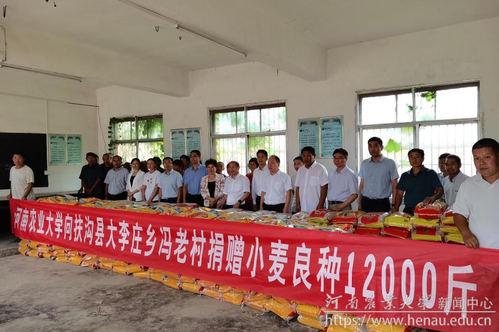 介晓磊表示,学校将一如既往的发挥智力、人才、科技等后盾优势,加大帮扶力度,希望与扶沟县在加快农业科技创新、产业提质增效,推动高质量发展方面继续开展深度合作。介晓磊代表学校向冯老村捐赠了我校农学院培育的优质高产多抗小麦新品种。