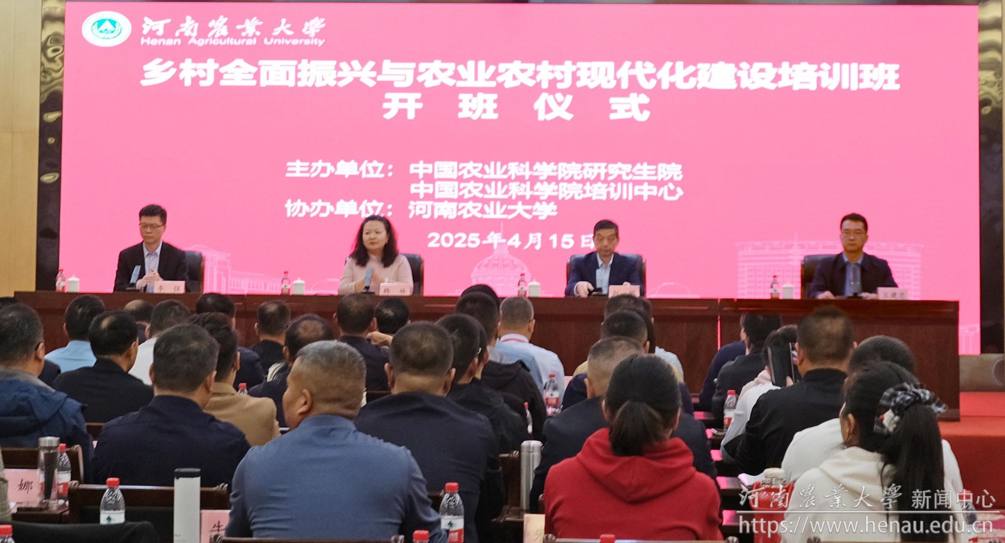 本网讯(通讯员 张红丽 图片 张德欣)4月15日,由中国农业科学院研究生院、中国农业科学院培训中心主办,河南农业大学协办的乡村全面振兴与农业农村现代化建设培训班在郑州开班。副校长赵鹏,中国农业科学院研究生院院长助理、党委办公室主任韩姝,中国农业科学院研究生院继续教育处处长(挂职)李强出席开班仪式。我校继续教育学院相关负责人,以及来自甘肃省临潭县、江苏省东海县、四川省邛崃市、湖南省祁阳市、河南省兰考县、新乡县等6个乡村振兴科技示范县的93名学员参加开班仪式。仪式由继续教育学院院长王建忠主持。