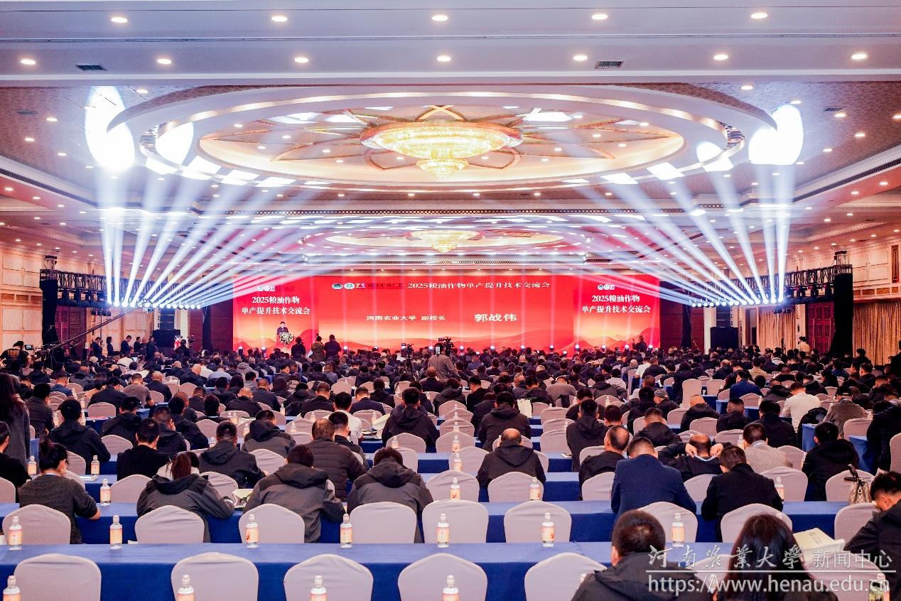 本网讯(通讯员 付欠丽)10月18日,2025粮油作物单产提升技术交流会在郑州召开。本次会议由中国农药发展与应用协会、河南农业大学共同主办,理学院与郑州郑氏化工产品有限公司联合承办。来自全国农业领域的专家学者、企业代表及农化从业人员1000余人现场参会。