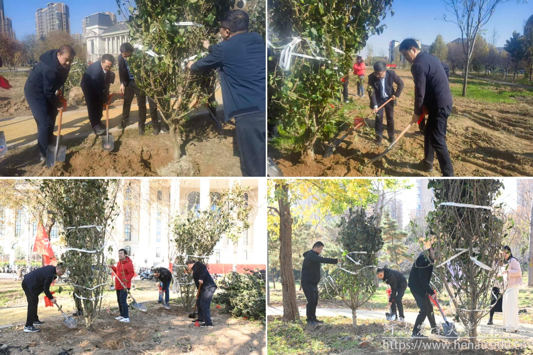 签约仪式后,学校举行中华木绣球种植活动。校党委书记岳杰勇,校党委副书记、工会主席邹松涛,副校长张骁、张朝阳与相关职能部门、烟草学院、园艺学院师生代表,机关党委和图书馆党员志愿者在图书馆南广场共同种下中华木绣球。