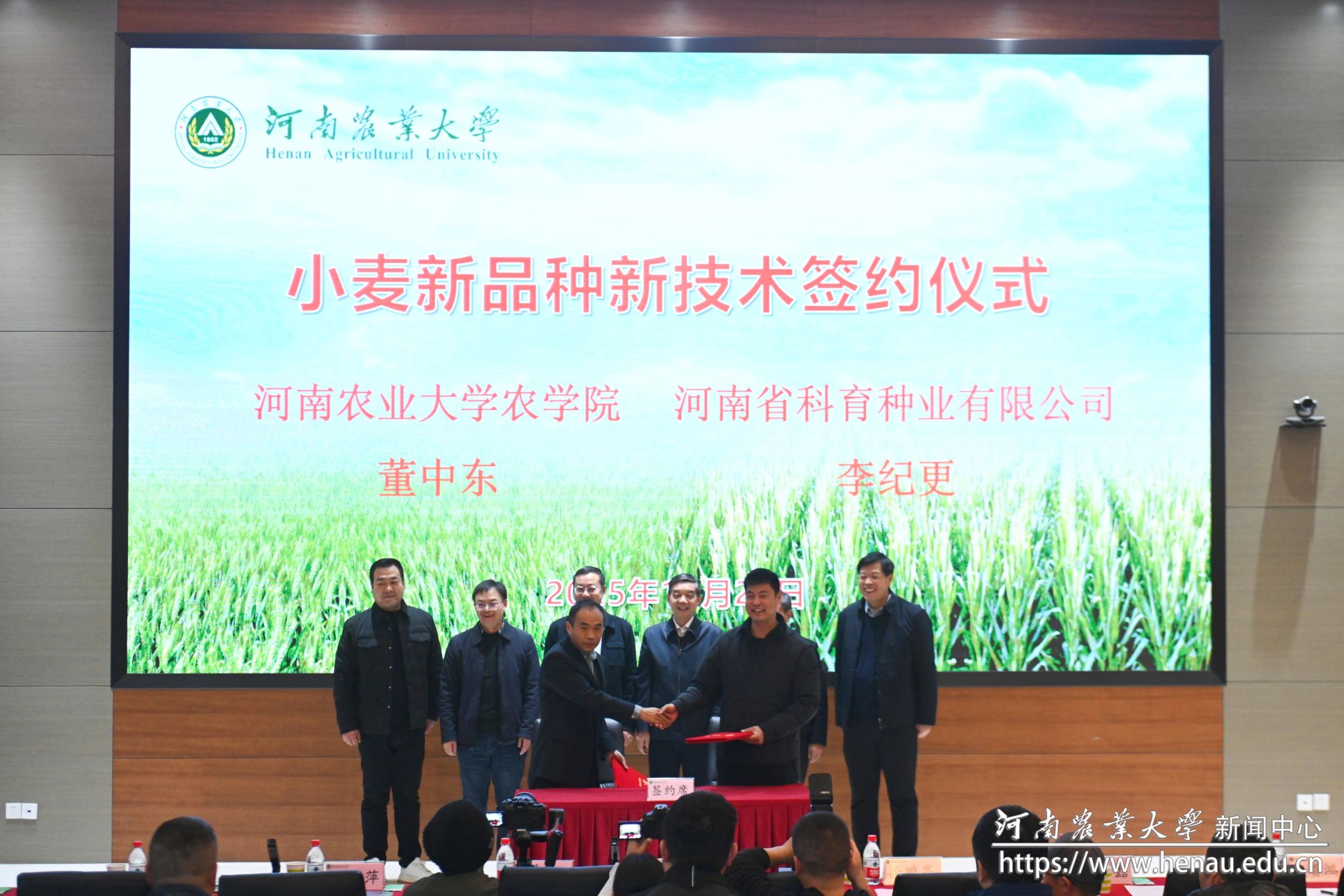 签约仪式上,学校与江苏省大华种业集团有限公司等17家种业企业现场签约金额3863万元,内容涵盖小麦、玉米、水稻等多个作物新品种与关键技术。