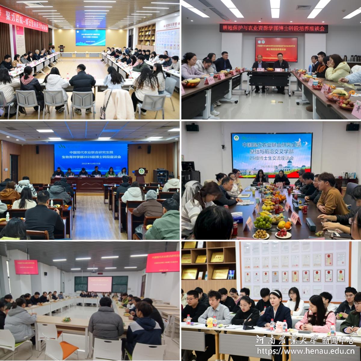本网讯(通讯员 贾秋宇 图片 石瑾瑾)为总结阶段性培养成果,保障博士研究生从课程学习顺利转入科研实践阶段,近日,中国现代农业联合研究生院以学部为单位组织召开2025级博士研究生转段交流座谈会。康相涛院士、耕地保护与农业资源学部执行主任介晓磊、生物安全学部执行主任张龙现、食品营养与健康学部执行主任李明,以及联合研究生院党政综合事务部负责人,各学部负责同志、辅导员、教务工作人员和2025级博士研究生参加座谈会。