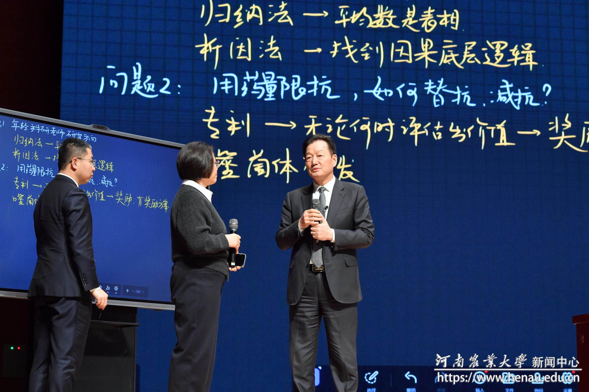秦英林以《构建生猪生产模型》为题作报告。他结合牧原集团三十年的发展实践,通过丰富的案例、详实的数据,围绕企业总体规划、行业机遇与挑战、构建养猪行业大模型等内容,系统阐述了生猪产业模型的前沿理论与创新路径。秦英林表示,希望与农大师生深度携手,共建生猪生产大模型,使之成为养猪行业的百科全书。与参会师生进行互动交流,现场气氛异常热烈,掌声经久不息。