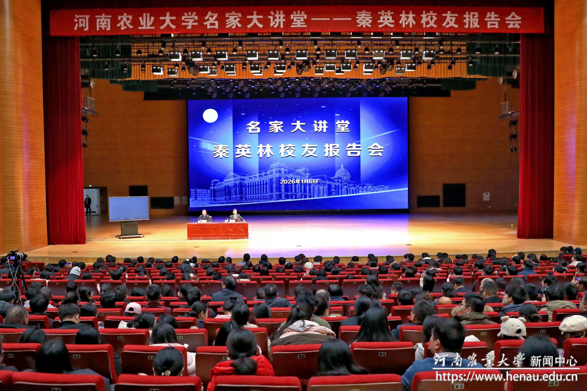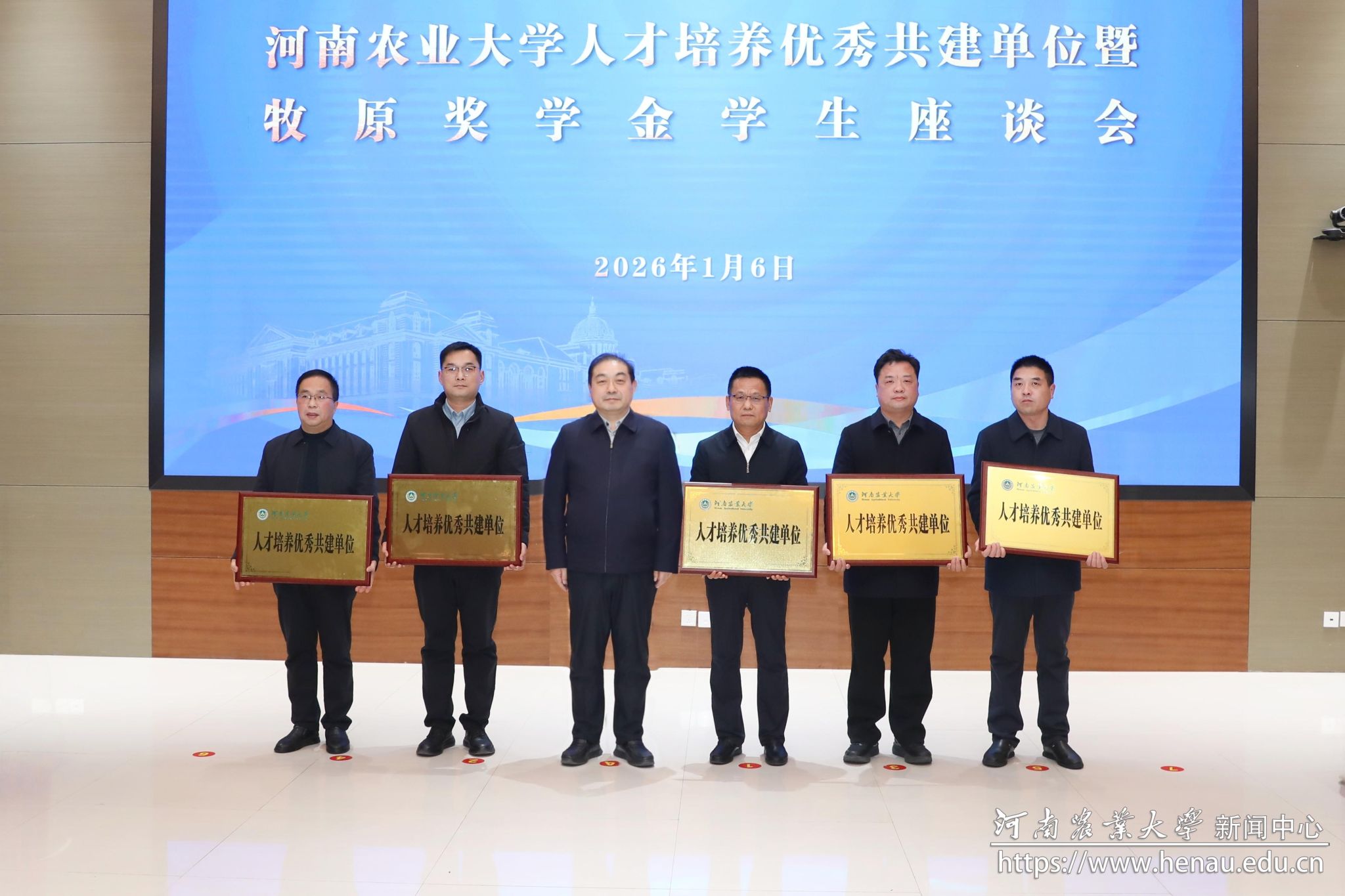 本网讯(通讯员 黄笑 陆嘉瑜 图片 黄璞 孙慧敏)1月6日,牧原食品股份有限公司董事长、1985级畜牧专业校友秦英林走进学校“名家大讲堂”作报告,并出席人才培养优秀共建单位暨牧原奖学金座谈会。校党委书记岳杰勇、校长周卫院士,校党委副书记、工会主席邹松涛,副校长张骁、郭战伟、汤继华,牧原集团相关负责人出席会议,学校相关职能部门和学院负责人、1500余名师生代表参加会议。内乡县高级中学、滑县第一高级中学、郸城县第一高级中学、鲁山县第一高级中学、固始县高级中学等五所中学校长参加座谈。