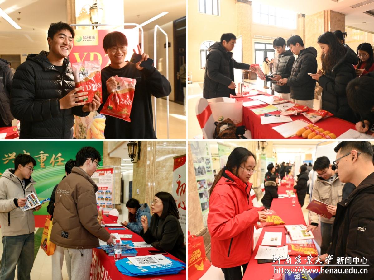 此次活动也是学校2026年首场作物学学科毕业生专场就业双选会,提供岗位1000余个,吸引了农学、植保、园艺、生命、资环等学院毕业生参与,26家农科龙头企业代表现场与毕业生交流探讨。招聘台前,毕业生们手持个人资料,主动了解感兴趣的企业,现场咨询并提交简历。同时,农学院多年来孕育的“金种子”悉数亮相,领取到种子的学生纷纷表示要把学校培育出的优良品种带回家乡。