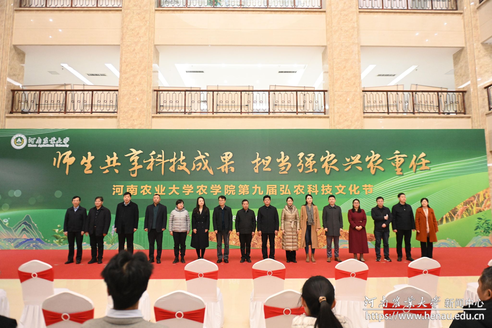 本网讯(通讯员 杨航 图片 石瑾瑾 李培亚)1月6日,学校在龙子湖校区举办“师生共享科技成果 担当强农兴农重任”第九届弘农科技文化节。副校长汤继华,学术副校长王道文出席活动。学校相关职能部门、农学院负责人,受邀用人单位与“金种子”企业代表,相关媒体及农学院师生参加活动。