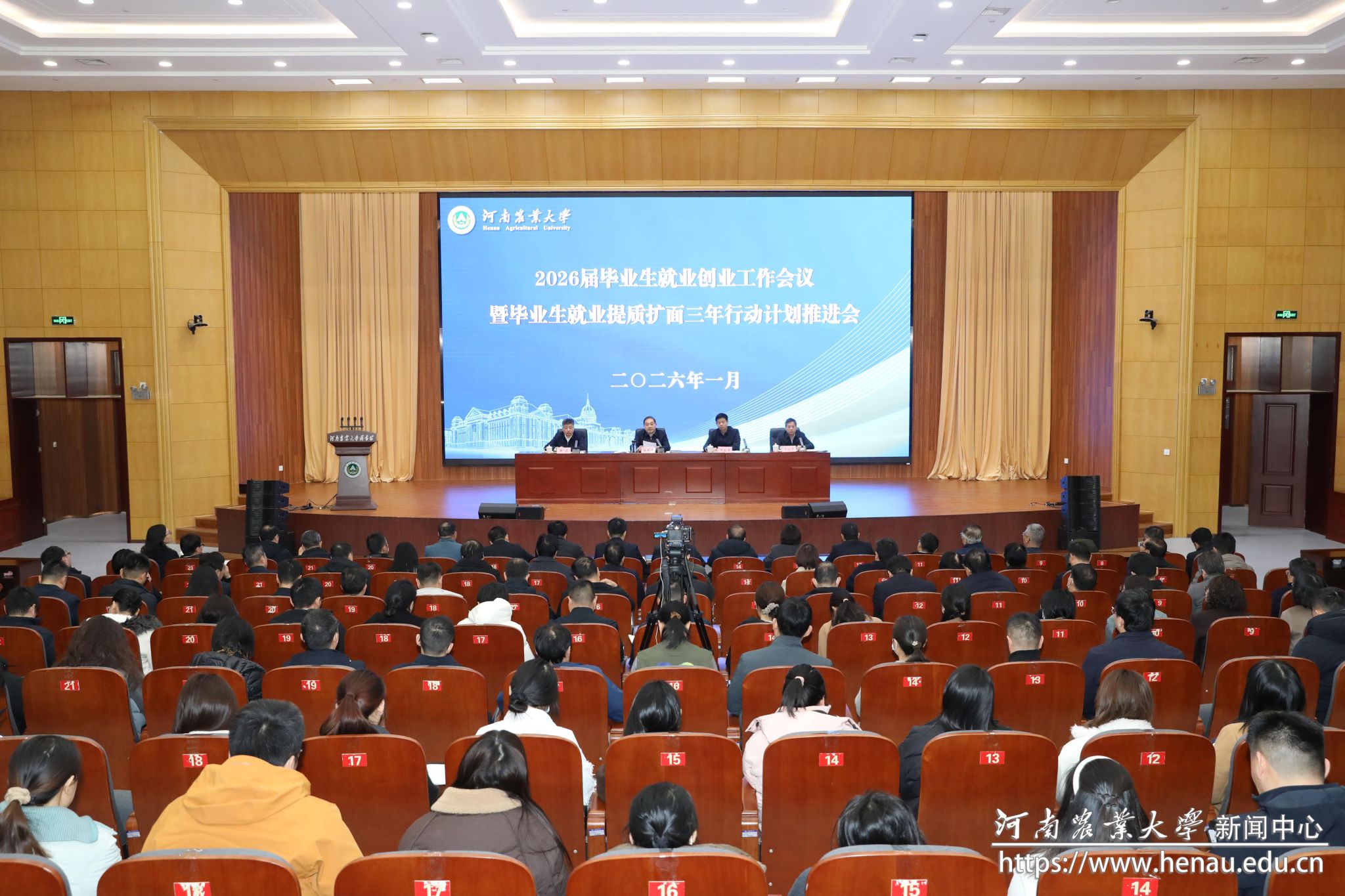 副校长汤继华宣读《河南农业大学促进2026届毕业生高质量充分就业工作方案》