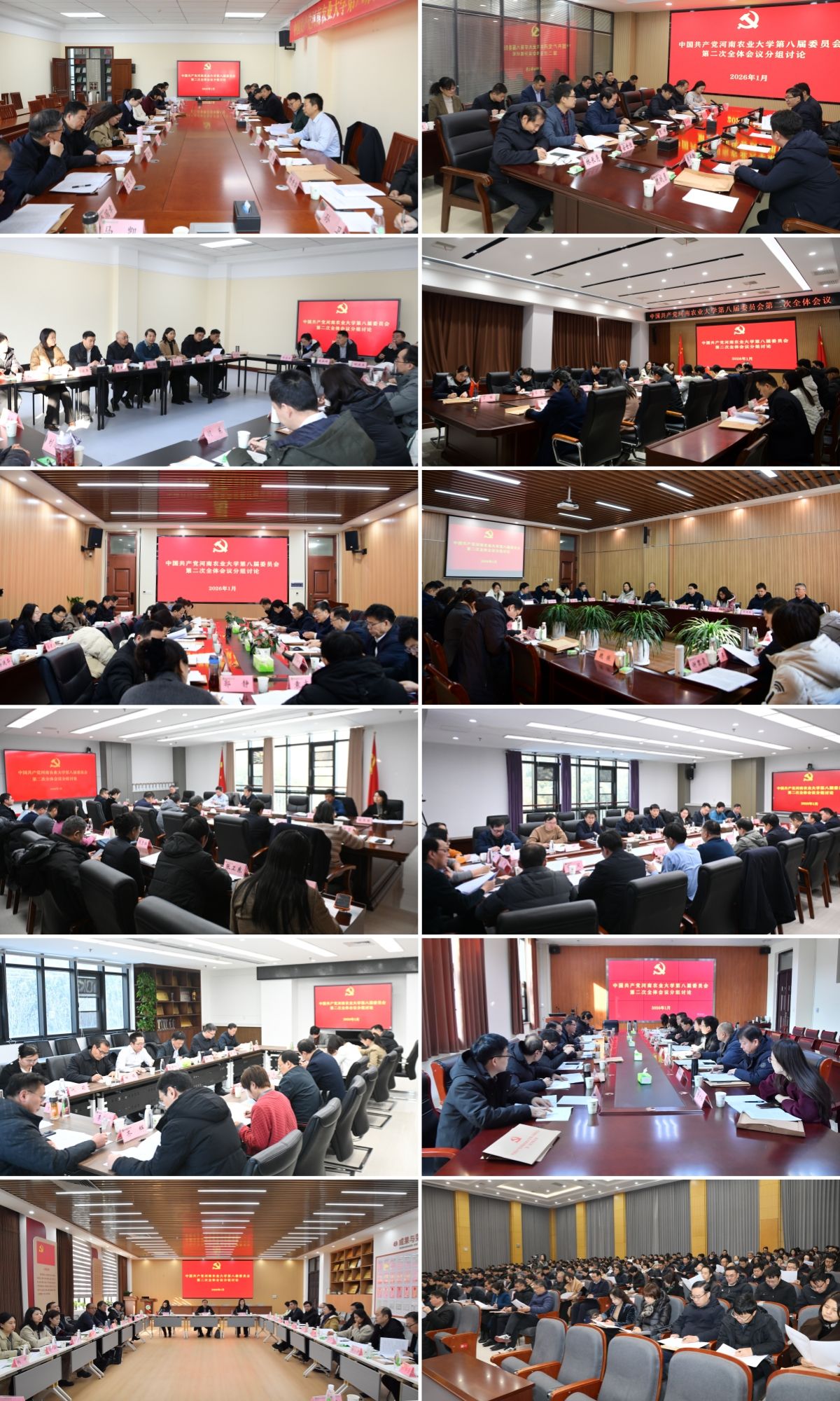 全会强调,2026年是学校“双一流”创建的决胜之年,是与中国农业科学院融合发展的关键之年,要深学细悟党中央决策和省委部署,高质量编制学校“十五五”规划,锚定“冲A入双”目标提升学科建设质效,引育并举强化人才队伍建设,有组织推进科技创新重点工作,构建具有辨识度的人才培养体系,推动融合发展工作提质扩面增效,持续改善办学条件,纵深推进全面从严治党。要以“四季看变化”的工作理念,将全会确定的各项目标任务细化分解、压实责任、狠抓落实,始终保持奋发有为的精神状态和求真务实的工作作风,坚定信心、乘势而上,推动高质量发展、推进高效能治理,努力为服务强国强省建设作出新的更大贡献。