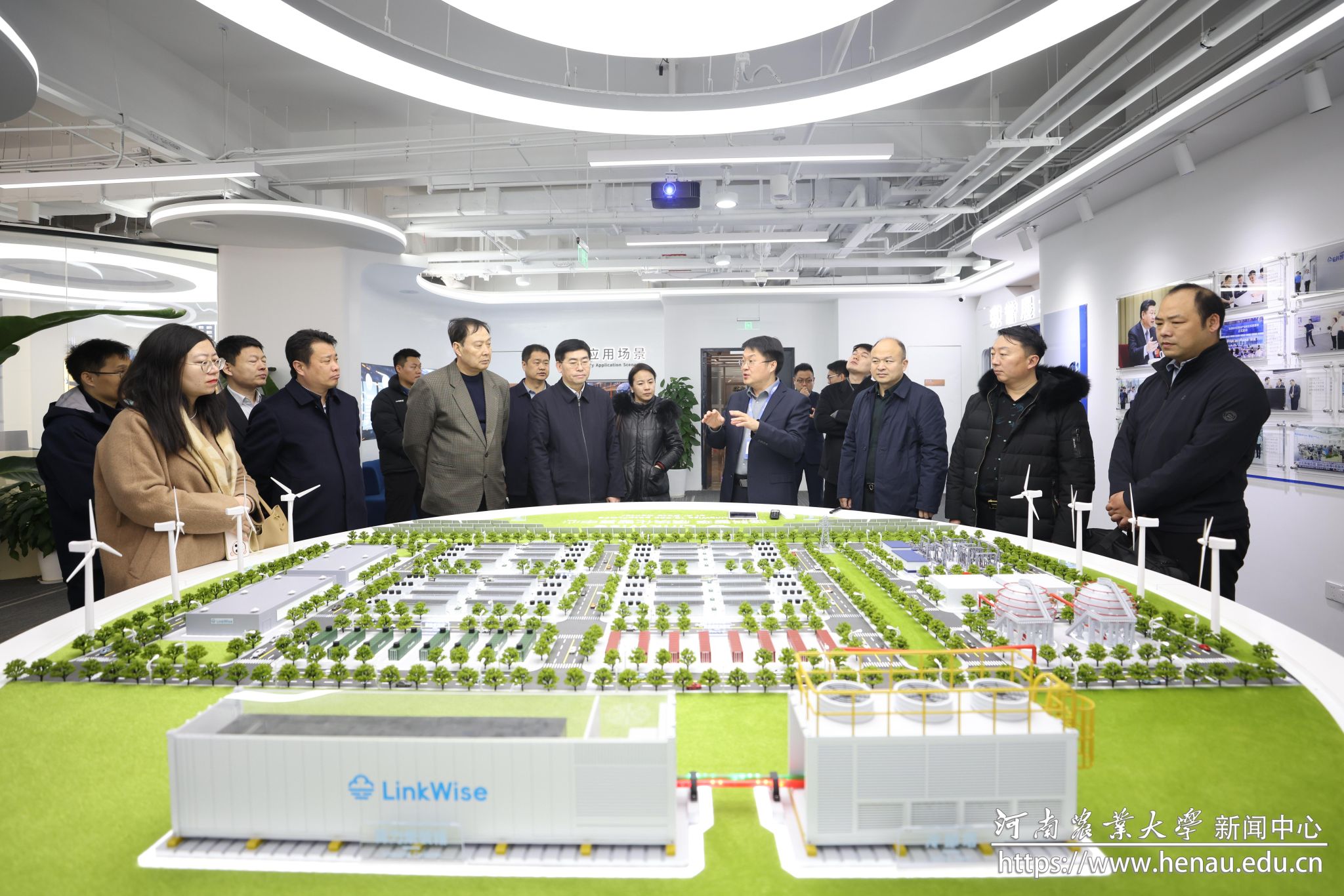 在赛那德科技有限公司,郭战伟一行参观了办公场所与产品研发及展示区。1998级农经专业校友、公司董事陶军辉介绍了公司基本情况,在装卸机器人研发中取得的成绩、产品布局及未来规划。郭战伟感谢陶军辉长期以来对母校的关心支持,期待校企双方拓展合作领域,实现共赢发展。
