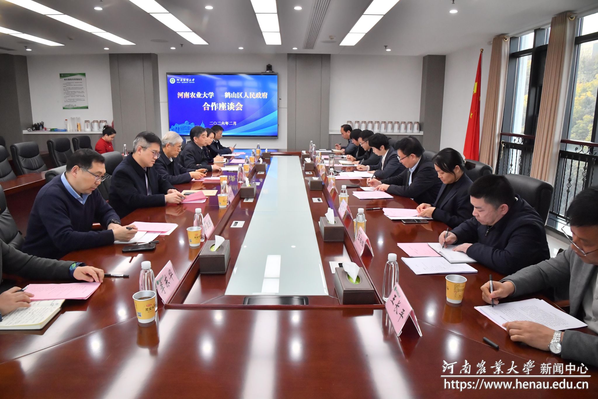 本网讯(通讯员 钱青秀 图片 孙慧敏)2月11日,学校与鹤壁市鹤山区围绕蛋鸡产业高质量发展在龙子湖校区举行合作座谈会。国家蛋鸡产业技术体系岗位科学家康相涛院士,副校长赵鹏,鹤山区委书记李明霖、区长王国宇出席会议。学校相关部门负责人、康相涛院士团队成员参加会议。
