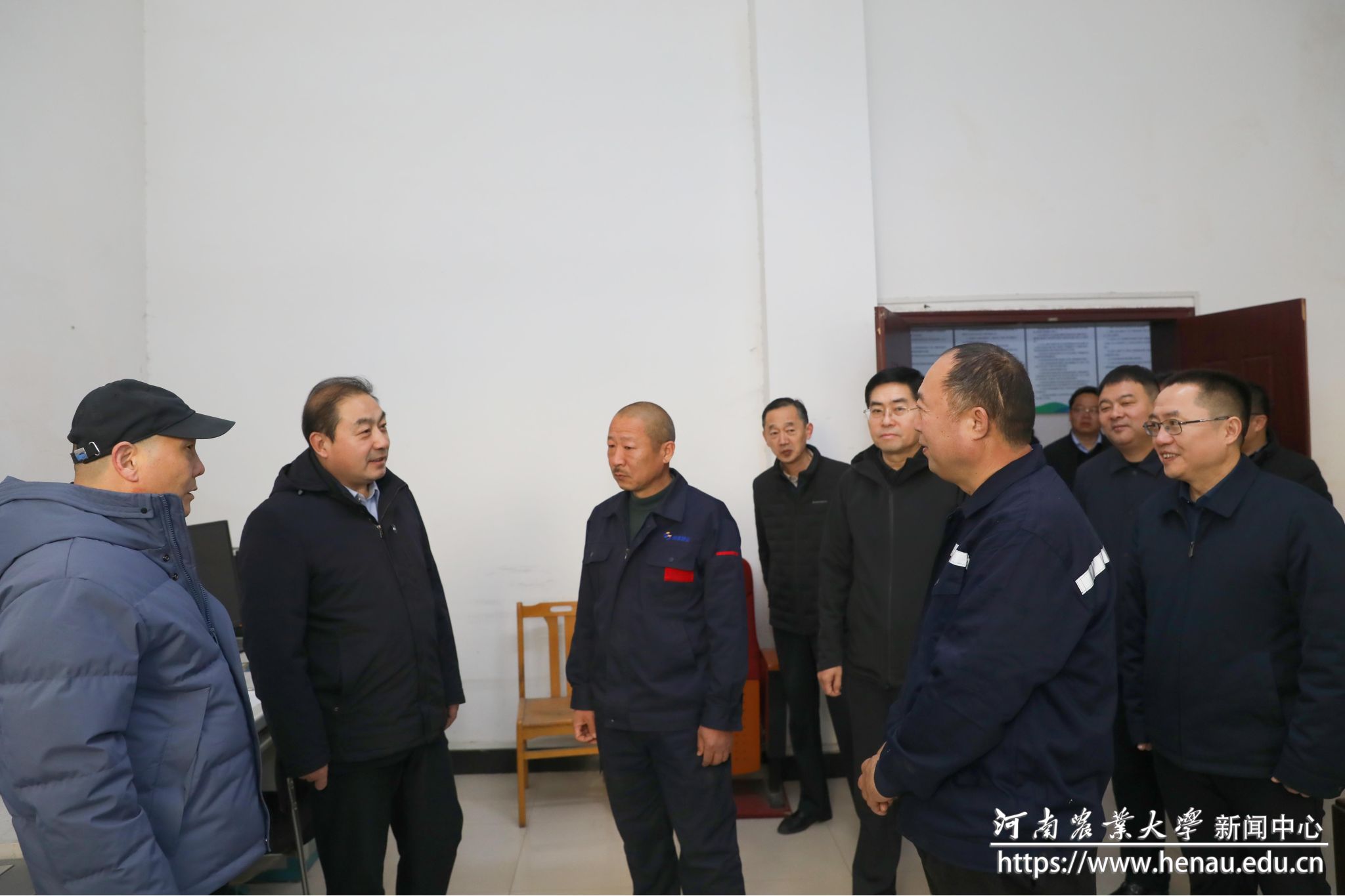 岳杰勇一行先后来到学校总值班室、龙子湖校区中心配电房、北大门值班岗亭等地,亲切看望坚守岗位的一线职工。每到一处,岳杰勇都与值班人员深入交流,详细了解假期运行保障情况,对大家“舍小家、顾大家”的奉献精神表示敬意和感谢,并叮嘱教职工们要做好安全稳定工作、合理安排值守班次、注意防寒保暖,确保以良好的状态投入工作。
