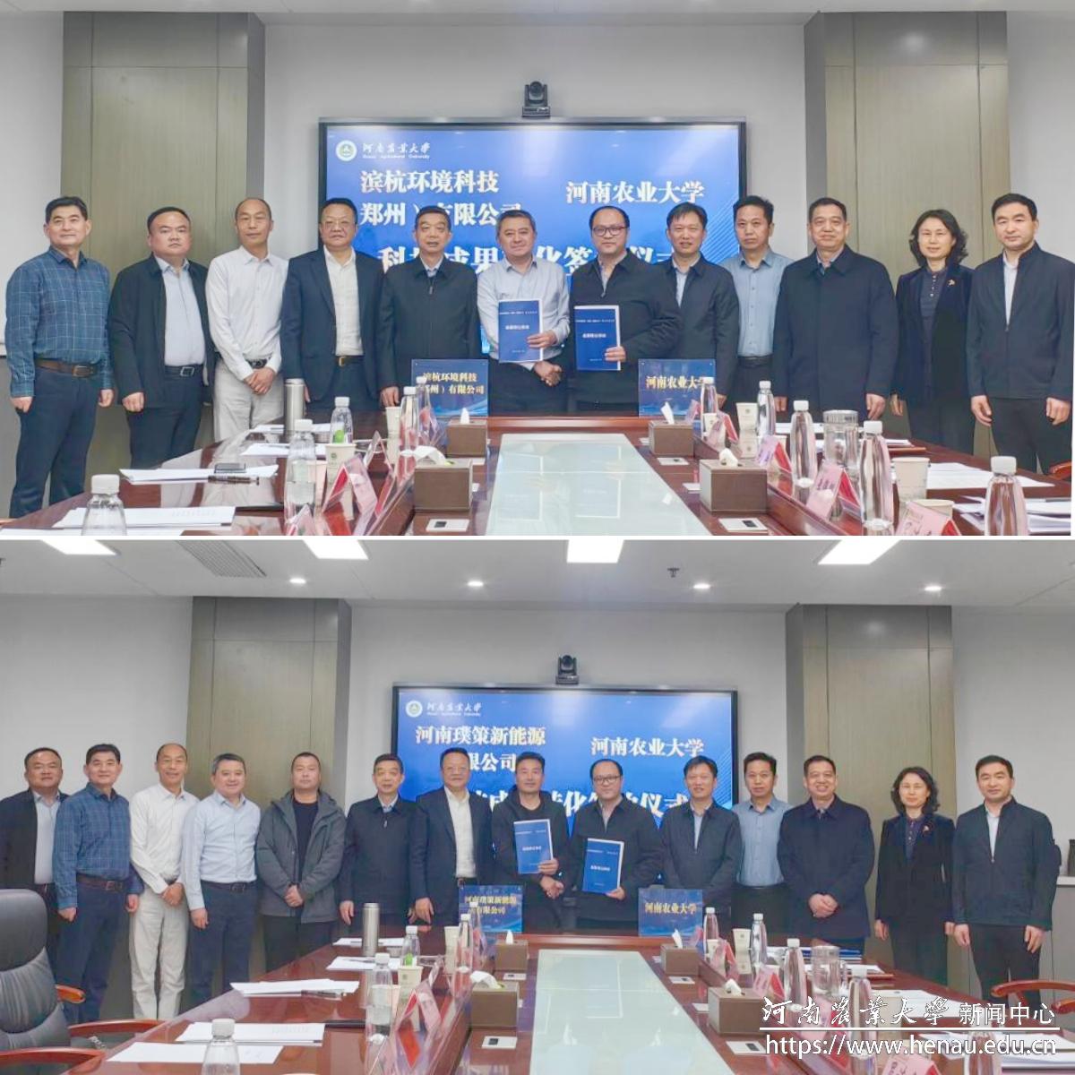 成果研发团队代表、机电工程学院副院长贺超教授分别与滨杭环境科技(郑州)有限公司代表何非、河南璞策新能源有限公司代表陈墨签署成果转化协议,签约总金额达1585万元。