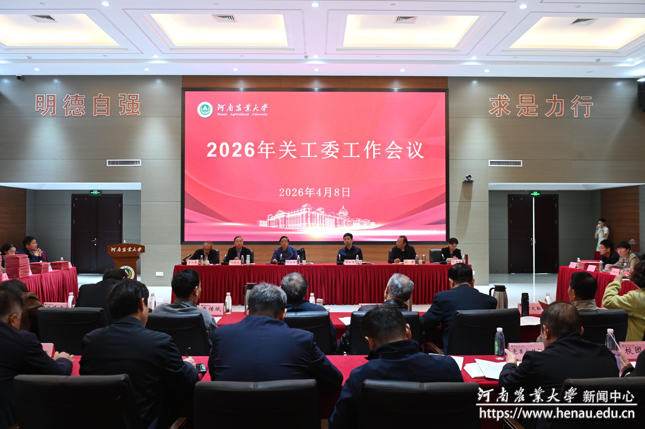 本网讯(通讯员 户小英)4月8日,学校2026年关工委工作会议在龙子湖校区召开。省教育厅关工委副主任高治军、副秘书长刘学军,校党委副书记、工会主席、关工委主任邹松涛出席会议。校关工委、离退休职工工作处、校关工委各成员单位负责同志、校关工委委员、各二级关工委主任、关工委学生委员代表、获奖学生和指导老师代表参加会议。