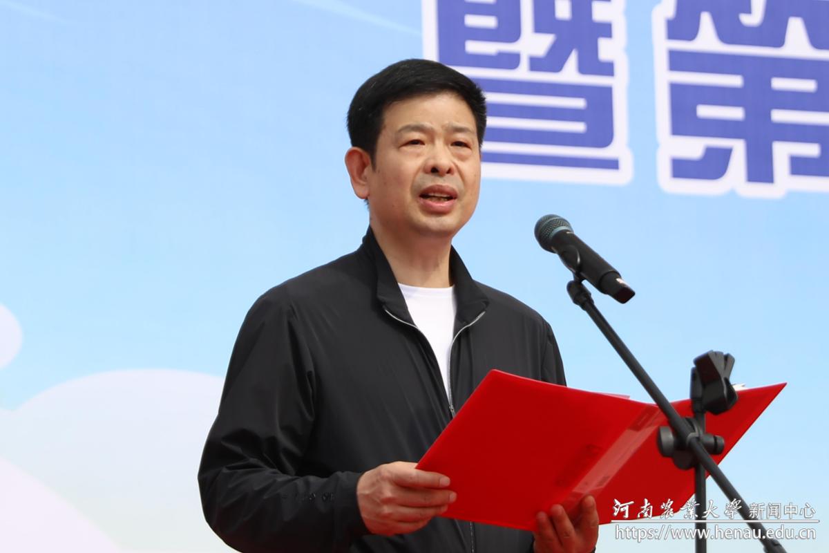 本网讯(通讯员 韩笑 白杨 图片 黄璞 李培亚)为进一步落实教育强国、体育强国、健康中原建设要求,探索新时代体育育人新路径的创新实践。4月14日,学校在龙子湖校区举行第五十五届田径运动会暨第一届“强体担使命 奋进创一流”运动健康文化节活动。校党委副书记、工会主席邹松涛出席开幕式。校体育运动委员会相关职能部门负责人、全校师生代表共同参加开幕式。