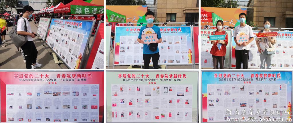 9月19日新生开学,食品科学技术学院开展“前置教育”成果展,共精选出141份作品,包含爱党、爱国、爱校三个主题,分享新生的学习感悟与体会。前置教育的开展,有助于新生坚定理想信念,增强爱校荣校意识,激励同学们以先辈为榜样,保持昂扬的精神迎接大学时光。