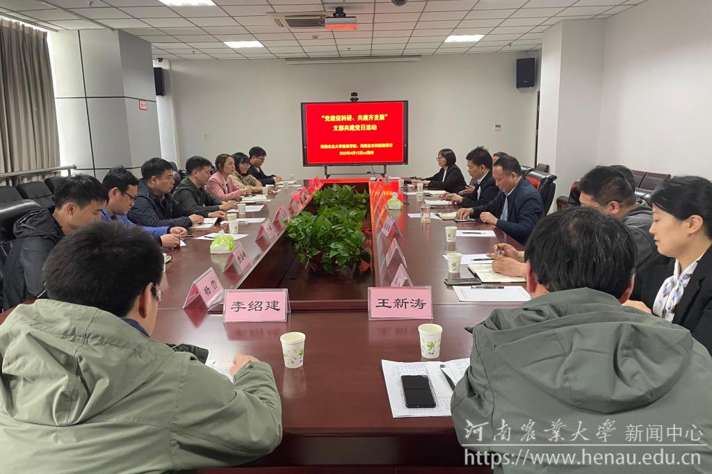 李兴道详细介绍了植保学院现状和发展规划,希望在学科建设、人才培养等方面加强沟通交流,充分发挥党建引领作用,推动党建和业务相融相促。鲁传涛介绍了植物保护研究所在党建工作中取得的成效和经验,提出了“优势互补,促进高质量发展,切实为河南省粮食安全生产保驾护航”的希望和要求。与会人员对建立常态联动机制、打造“一院一所”合作模式的具体措施进行深入探讨。