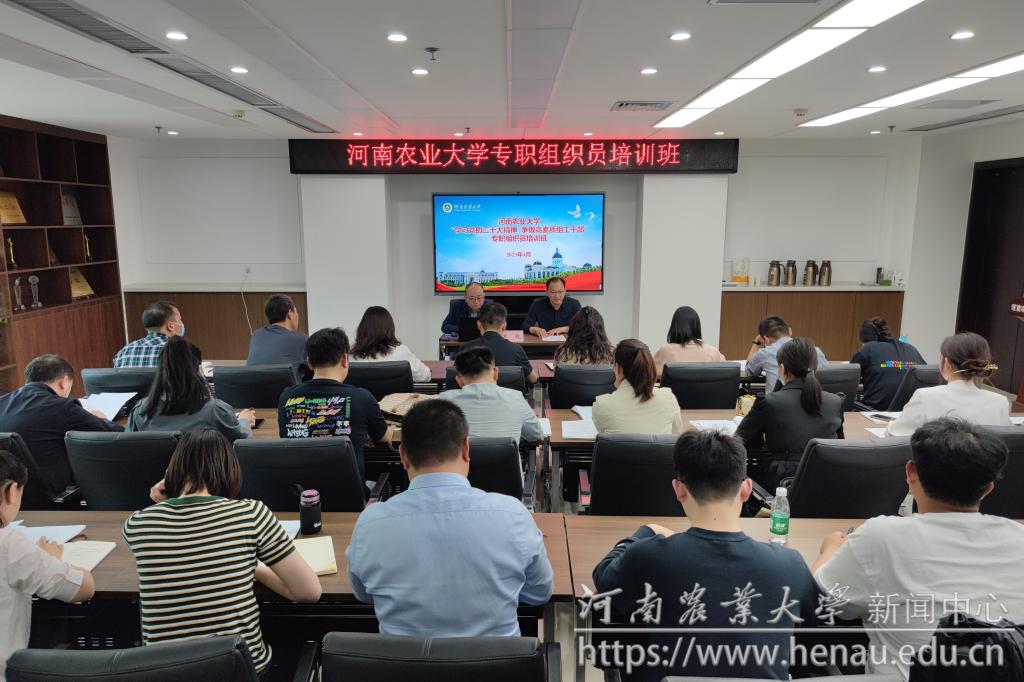 本网讯(通讯员 张世昌)4月19日,学校在龙子湖校区举办“学习党的二十大精神 争做高素质组工干部”专职组织员培训班。组织部全体工作人员、全校院系科级组织员、机关及直属单位基层党务工作人员参加培训。本次培训旨在深入学习贯彻党的二十大精神,持续增强我校组工干部队伍的政治素质和业务能力,进一步提升我校基层党建工作水平。