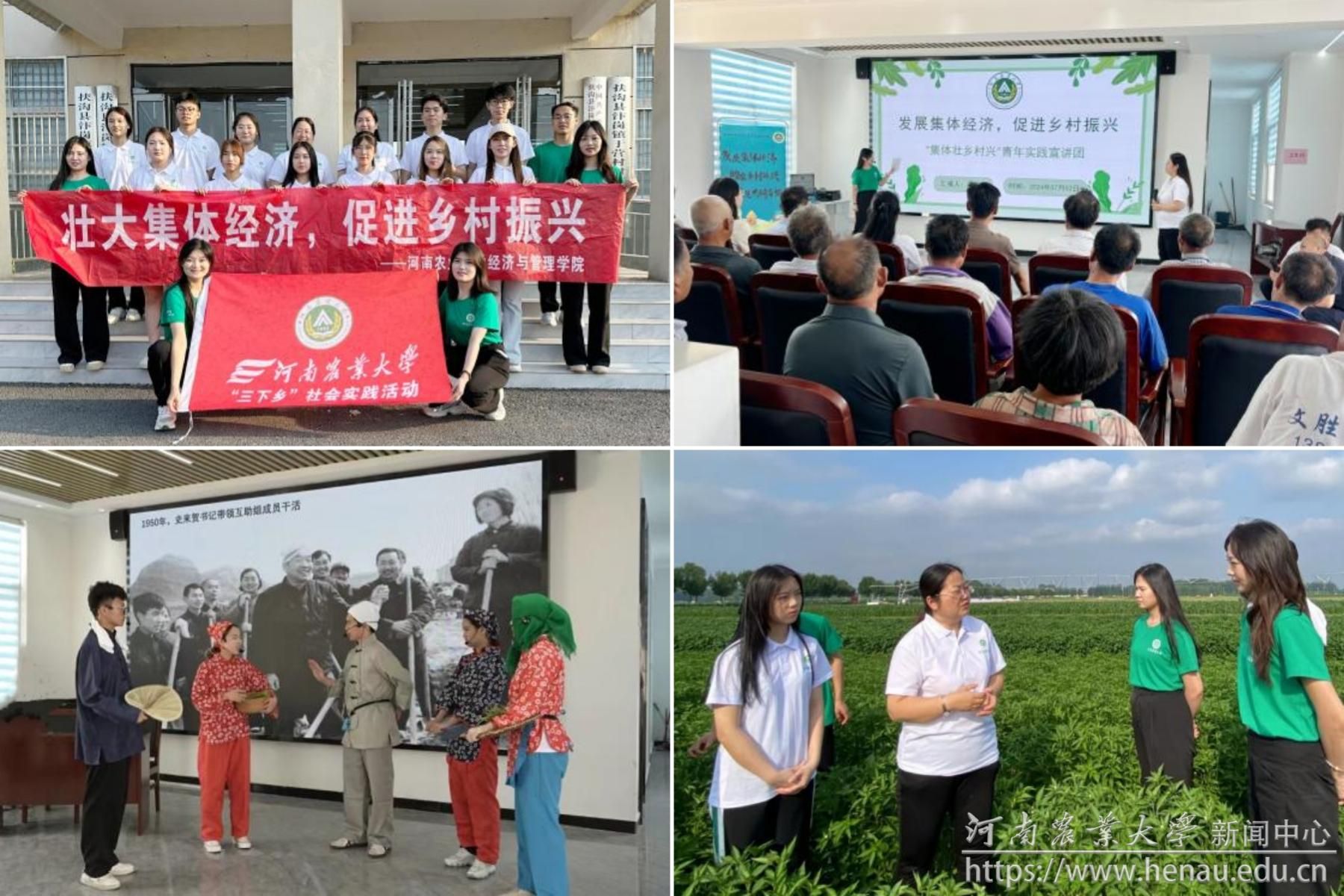 本网讯(通讯员 袁颖 崔甜玮)近日,经济与管理学院“集体壮 乡村兴”青年实践宣讲团赴周口扶沟县汴岗乡于营村进行暑假“三下乡”社会实践活动。学生们以话剧《刘庄集体腾飞之路》为载体,将课堂小剧场搬到乡村大舞台,以创新方式宣传农村集体经济政策,为乡村振兴注入青春活力。