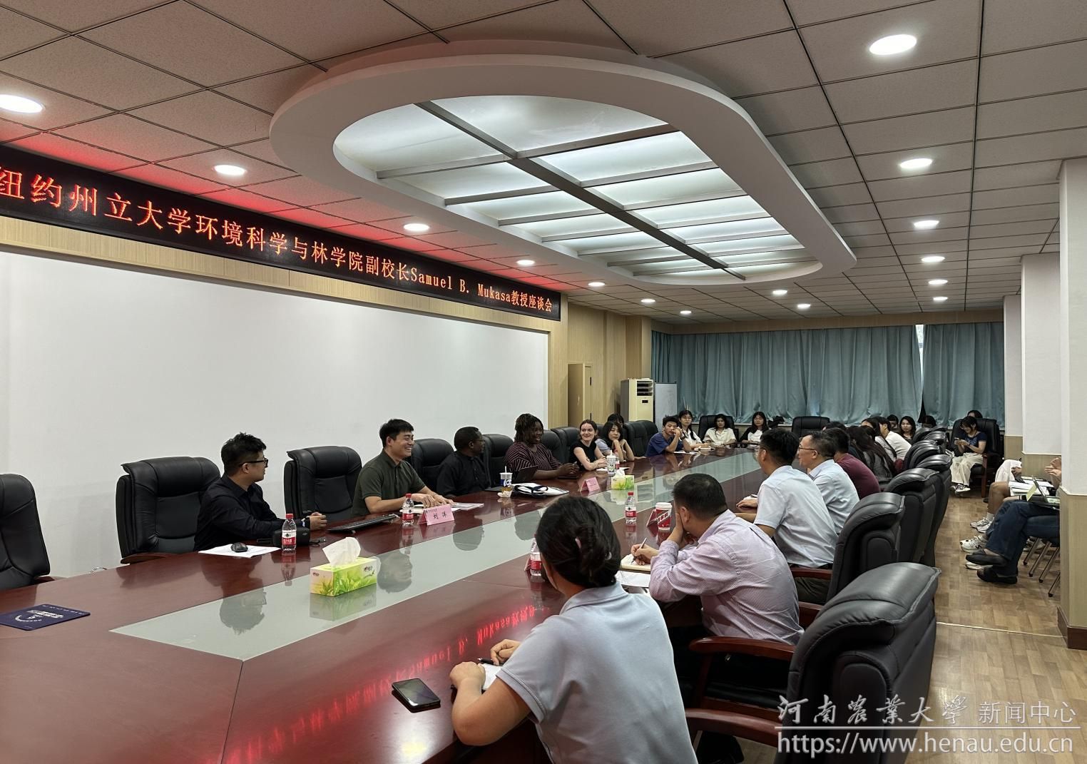 本网讯(通讯员 李雨澍)9月8日,纽约州立大学环境科学与林学院副校长萨梅尔·穆卡萨教授一行来校交流座谈。风景园林与艺术学院党委书记侯永华,风景园林与艺术学院、国际交流合作处相关负责人及师生代表参加会议。