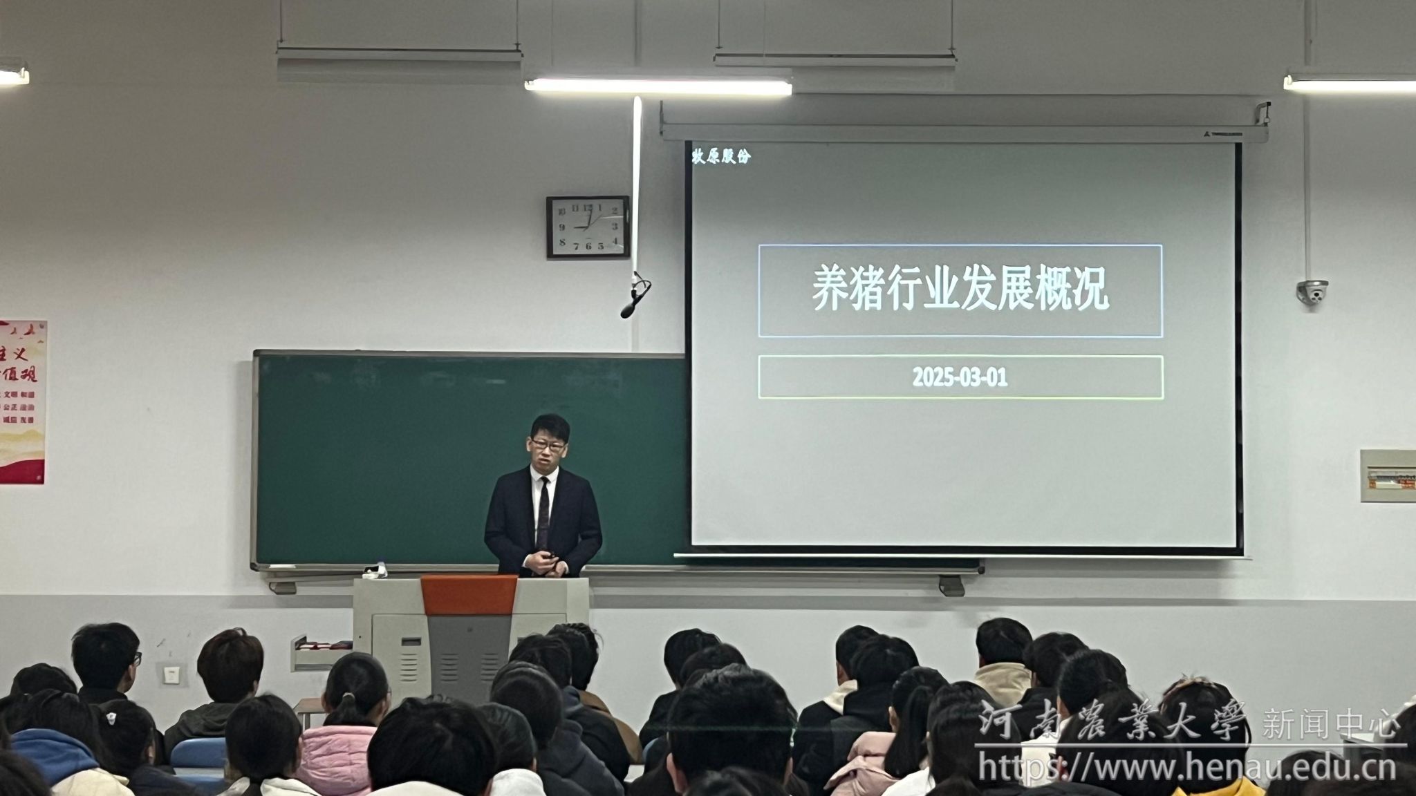 本网讯(通讯员 李品)3月1日,农大牧原联合产业研究院在龙子湖校区举办“牧原班”开学第一课。“牧原班”校外导师、牧原集团人力资源部招聘负责人张明川为同学们带来了一场关于养猪行业发展的精彩讲座。