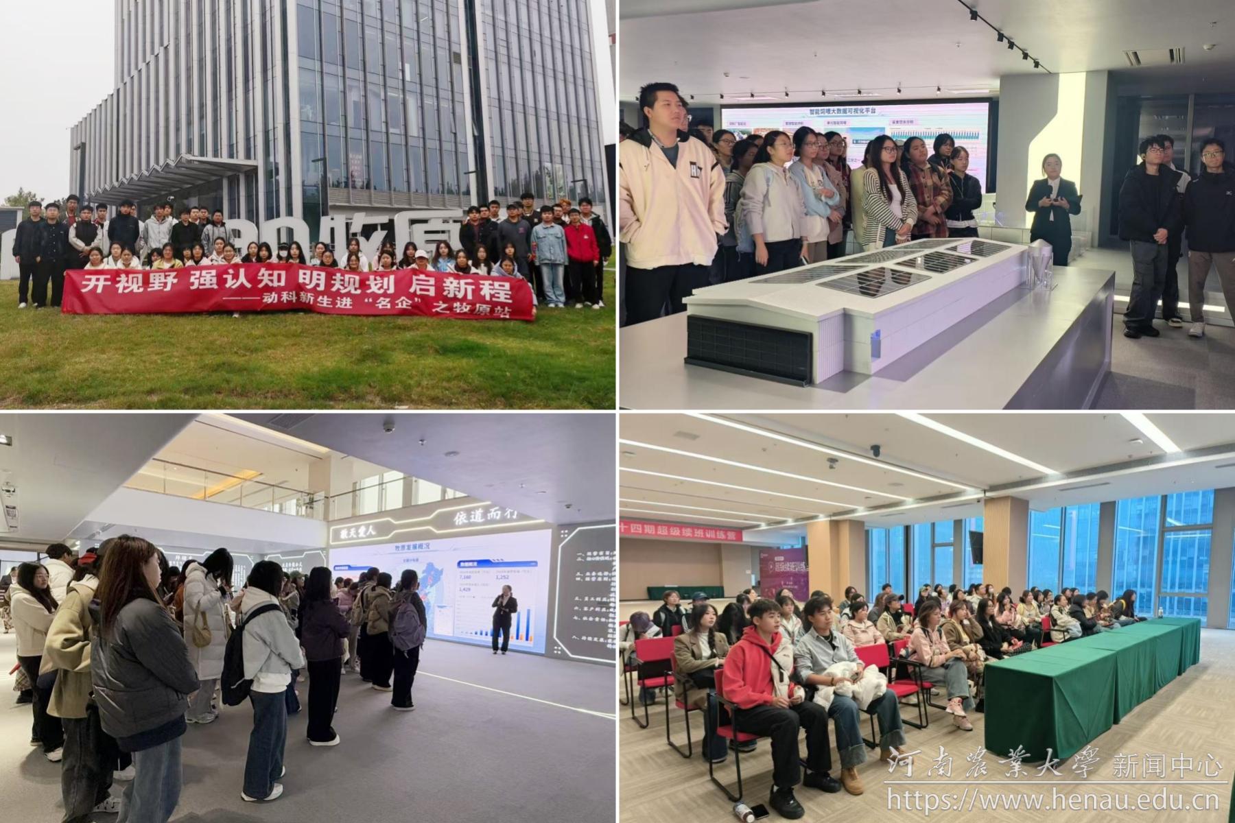 在牧原集团总部大厦,同学们集体观看了牧原集团纪录片,了解了全球最大生猪养殖企业的发展历程、价值理念及产业发展前景,并积极参与互动体验,结合专业知识与工作人员交流探讨。在中牟育种中心,学生们在沉浸式参访中对现代化牧业科技有了更加深入的了解,感受到了行业发展的广阔前景、技术创新的迫切与青年创新的担当,进一步增强了专业自信心和自豪感。