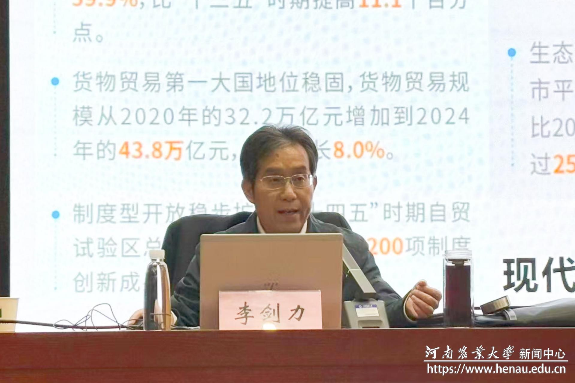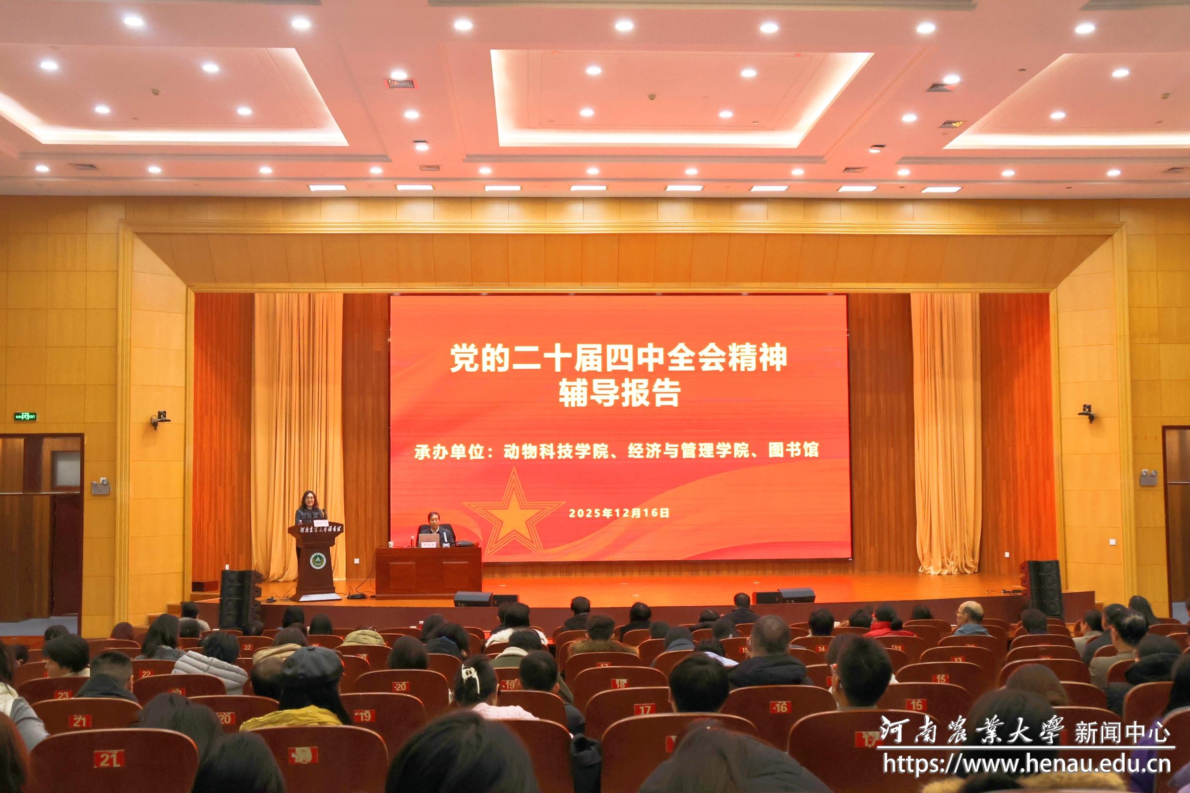 本网讯(通讯员 郭明)为深入学习贯彻党的二十届四中全会精神,12月16日,动物科技学院、经济与管理学院和图书馆邀请中共河南省委党校(河南行政学院)校务委员会委员、党组成员李剑力教授在龙子湖校区作学习贯彻党的二十届四中全会精神专题报告。学校师生代表300余人参加报告会。
