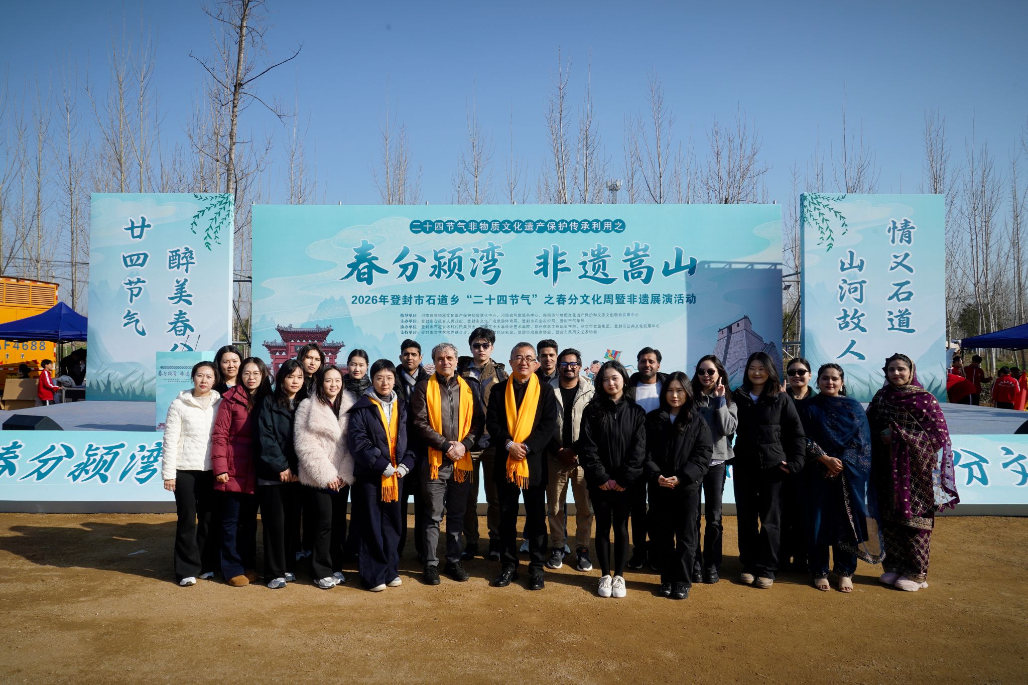 本网讯(通讯员 赵玮莉)春风拂颍水,非遗耀嵩山。3月20日,2026年登封市“二十四节气”之春分文化周暨非遗展演活动盛大启幕。国际教育学院负责人、相关教师及留学生代表参加活动。