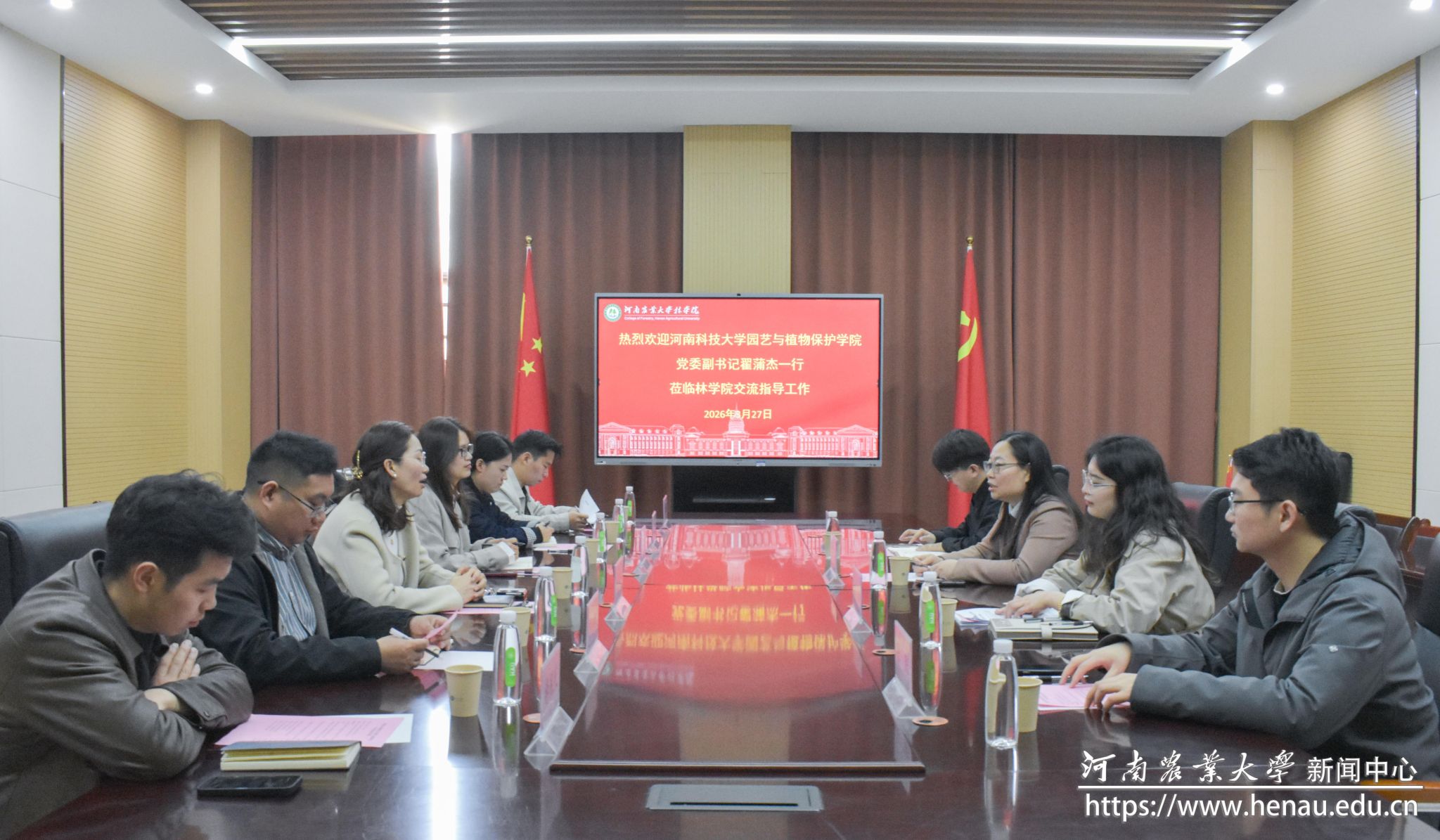 本网讯(通讯员 张琛)3月27日,河南科技大学园艺与植物保护学院党委副书记、纪委书记、工会主席翟蒲杰,就业办公室主任丁月华,研究生工作办公室主任于善武,本科生工作办公室副主任张晓芳、李燕光来校交流调研。林学院相关负责人参加座谈会。