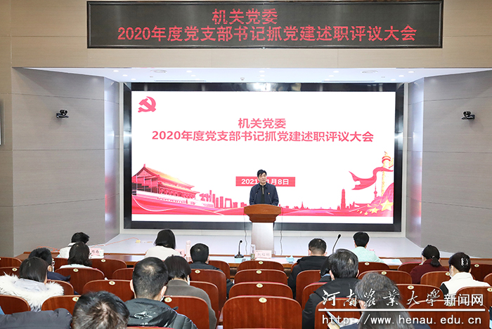 本网讯(通讯员 刘磊 图片 谢东明)1月8日,机关党委召开2020年度党支部书记抓党建述职评议大会。校党委副书记赵榴明出席会议,考核工作组成员、机关党委全体党支部书记及党员干部代表参加会议。会议由机关党委书记李为主持。