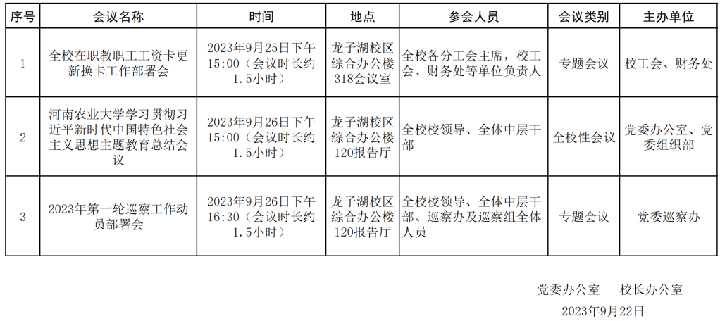 会议通知:2023-2024学年第一学期第四周会议安排(9月25日—10月1日)