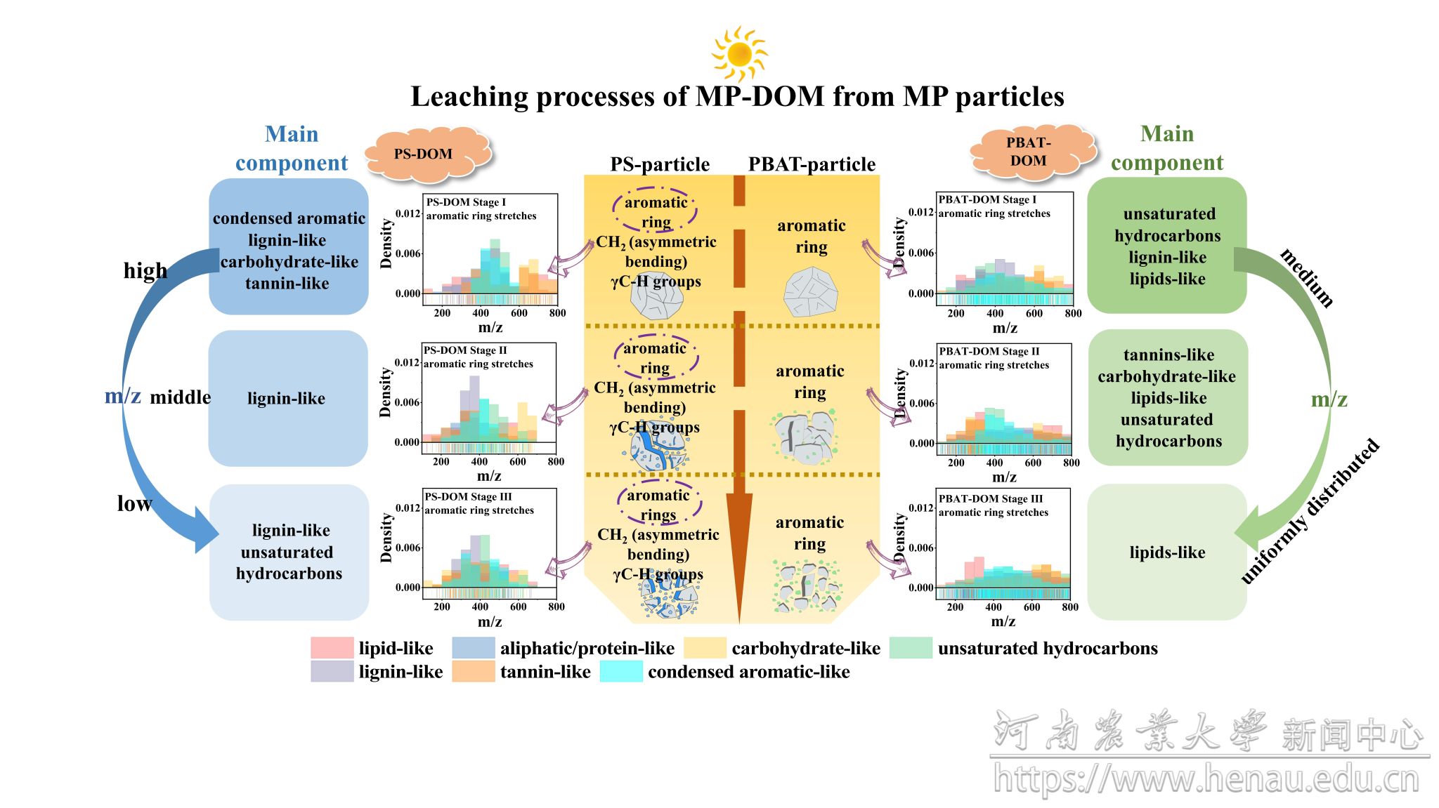 图1 不同阶段由 MP 颗粒形成MP-DOM 的分子层面机制