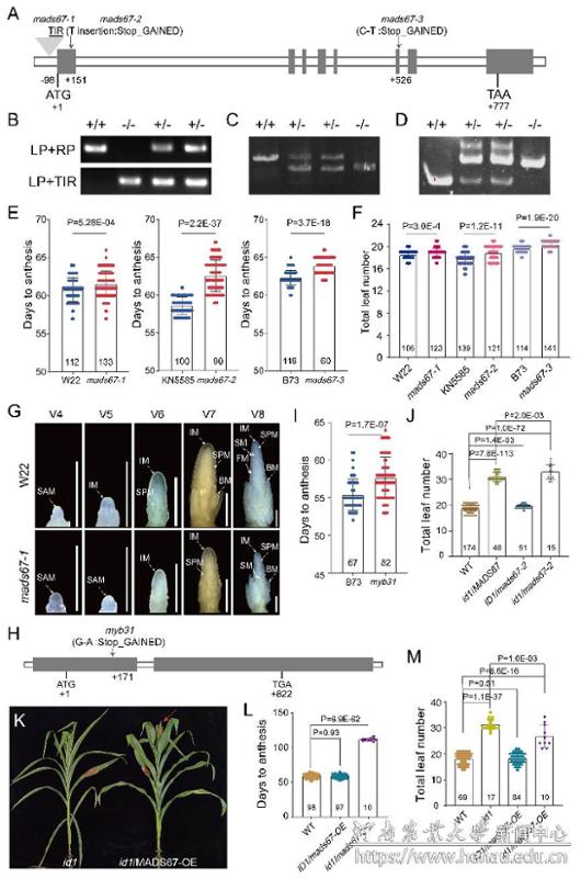 图4 MADS67和MYB31促进玉米成花转变