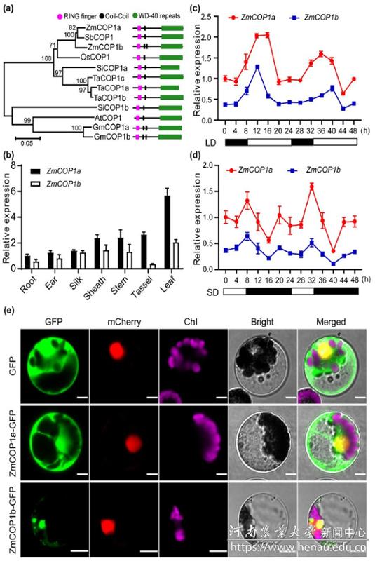 1. ZmCOP1a和ZmCOP1b的系统发育关系与表达谱