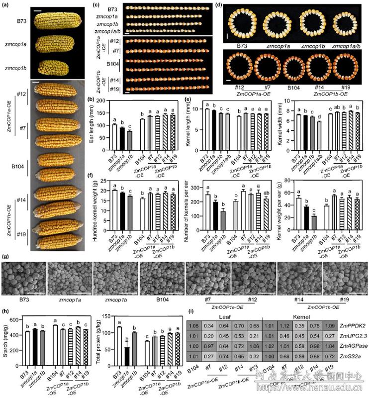图4 ZmCOP1a和ZmCOP1b共同调控籽粒大小、淀粉-蛋白质平衡及产量性状