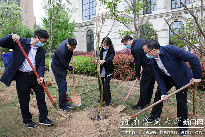 在龙子湖校区和文化路校区,大家挥锹培土,扶枝入坑,提水浇灌,欢声笑语中,共同种下了对学校的深情厚谊和美好祝福。待到盛夏校庆日,书香花香相辉映,定会盛放红满堂。