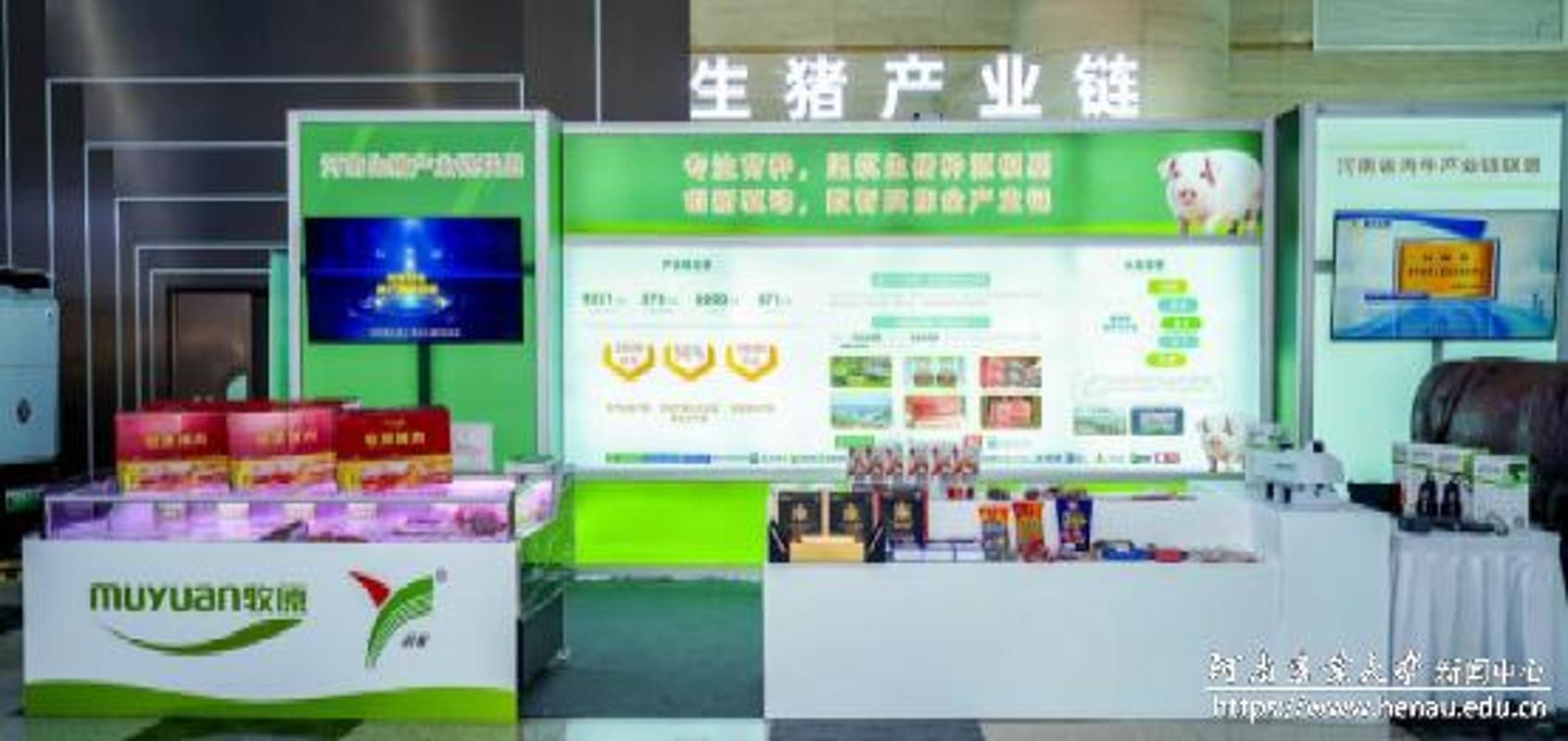 在大会特设的“河南农业强省建设成果展”中,学校联合牧原食品股份有限公司、河南双汇投资发展股份有限公司和河南省谊发牧业有限责任公司等生猪产业链联盟单位设置了成果展台,呈现了河南省生猪产业链的整体布局与突出成就,生动体现了“产学研用”紧密衔接、共同推动产业进步的强大合力。