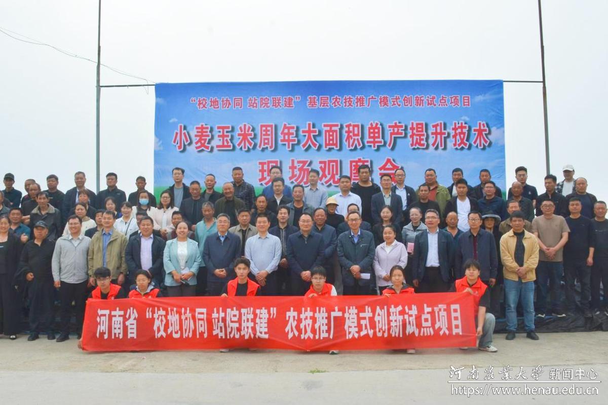 作为“校地协同,站院联建”项目的生动实践,此次活动不仅是技术展示,更是体制机制的创新探索。李华勇介绍,自2014年与河南农业大学合作以来,专家扎根西平,有力推动了全县农业科技水平位居全省前列。2024年,西平县被列为“校地协同 站院联建”试点县。借助高校的科研力量,西平县正全力破解基层农技推广“最后一公里”难题,通过培养一批懂技术、善经营的“土专家”和示范户,进一步扛牢粮食安全重任,助力乡村全面振兴。社会服务处负责人表示,近年来通过积极探索“校地协同、站院联建”农技推广新模式,创新推出“1+N”结对服务机制,形成了高效的链式推广路径,有效提升了全省各试点的粮食产能。