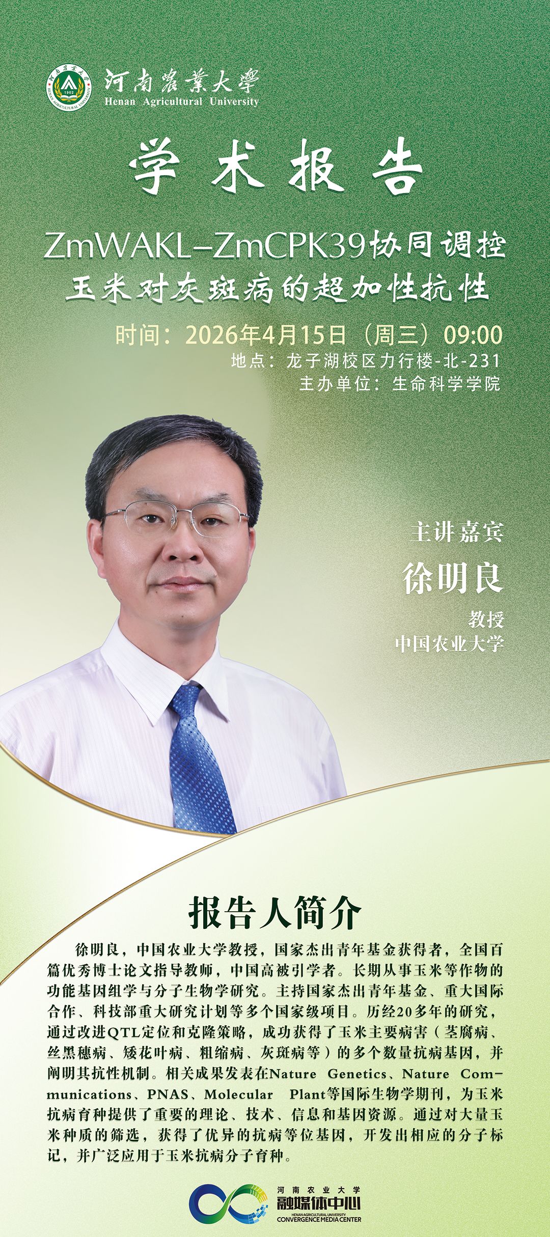 4月15日丨ZmWAKL-ZmCPK39协同调控玉米对灰斑病的超加性抗性(徐明亮)