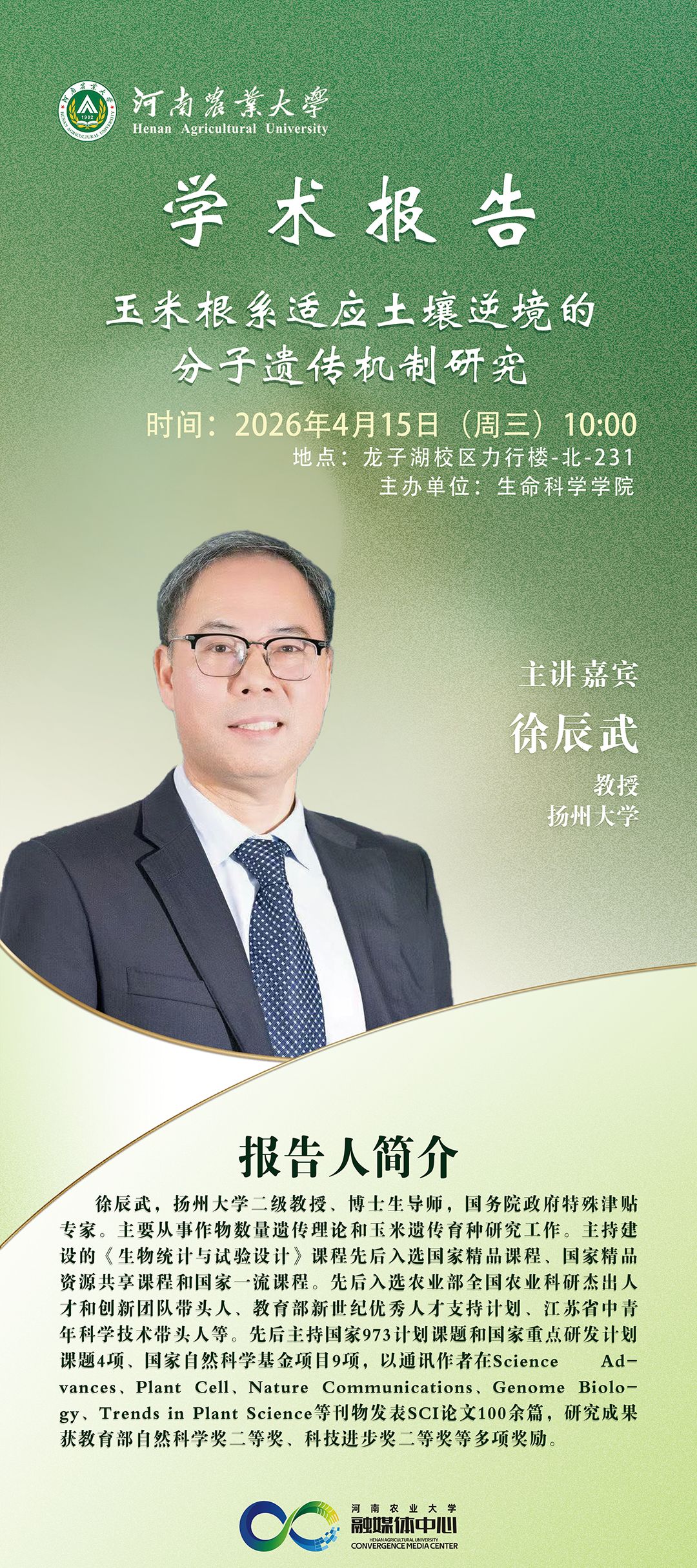 4月15日丨玉米根系适应土壤逆境的分子遗传机制研究(徐辰武)