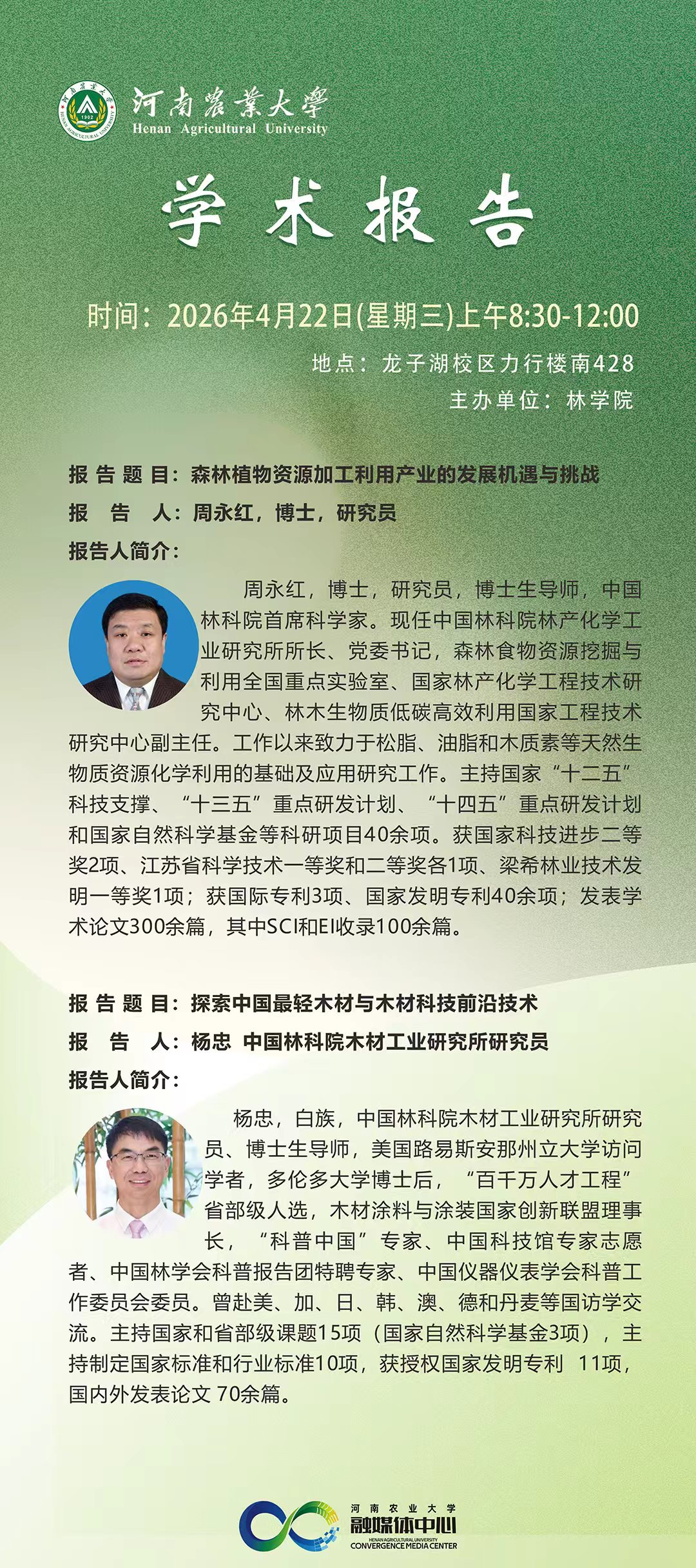 4月22日丨森林植物资源加工利用产业的发展机遇与挑战、探索中国最轻木材与木材科技前沿技术(周永红、杨忠)