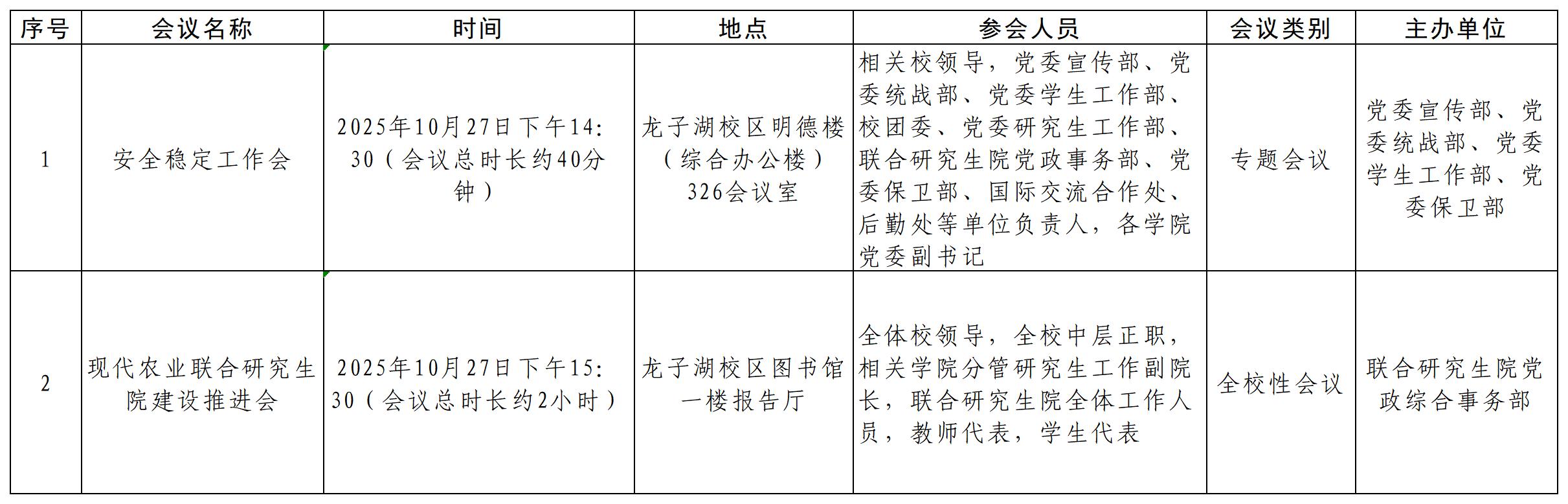 会议通知:2025-2026学年第一学期第九周会议安排(10月27日—11月2日)
