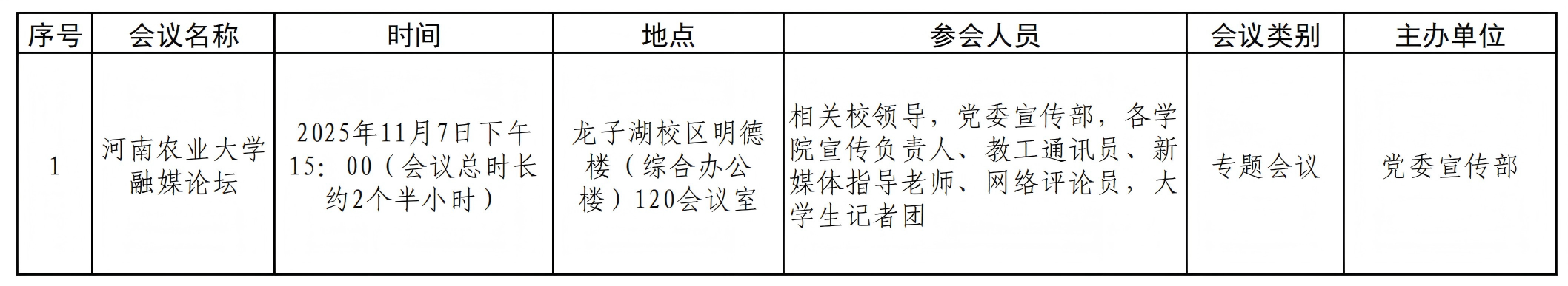 会议通知:2025-2026学年第一学期第十周会议安排(11月3日—11月9日)
