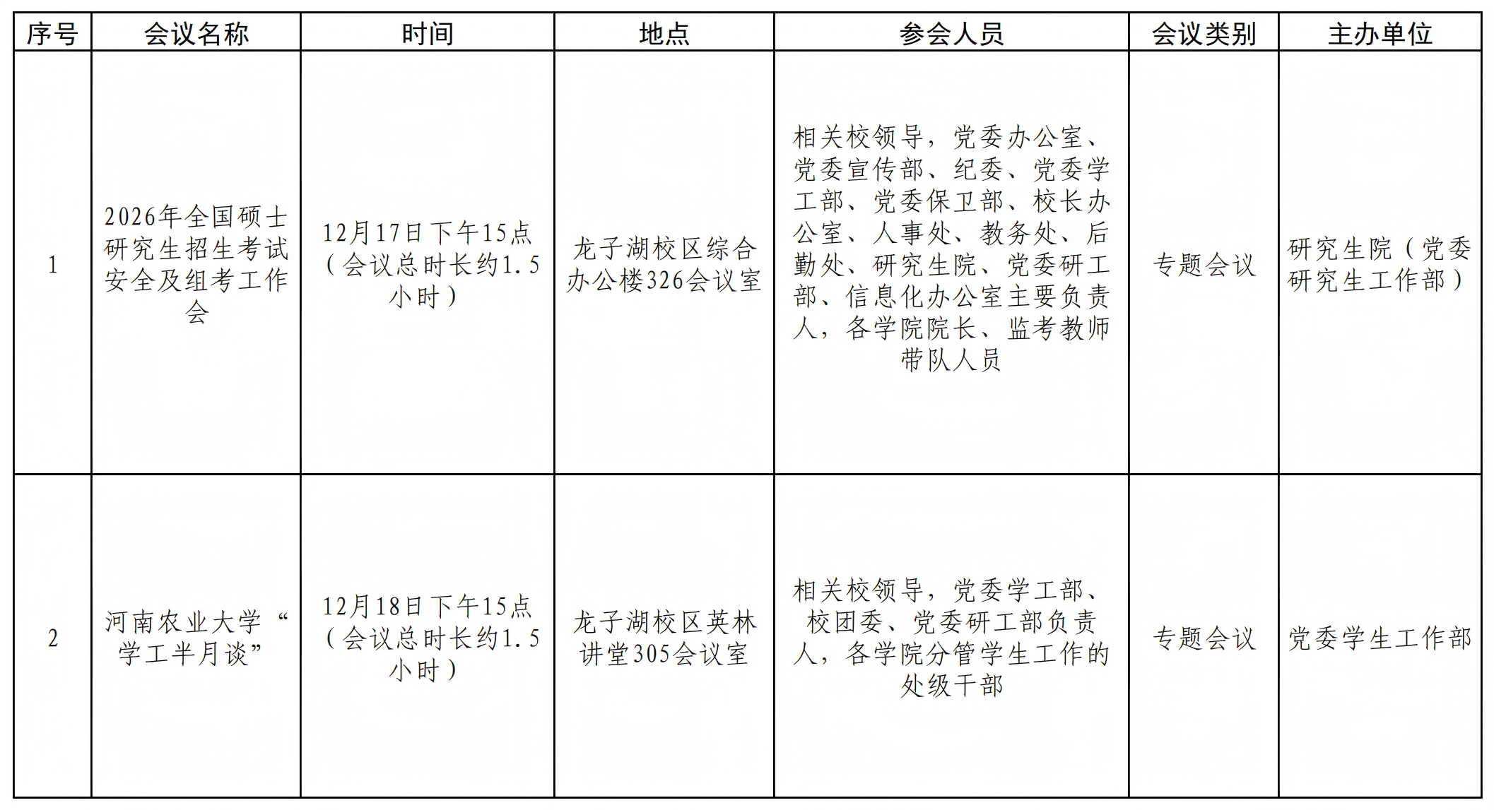 会议通知:2025-2026学年第一学期第十六周会议安排(12月15日—12月21日)